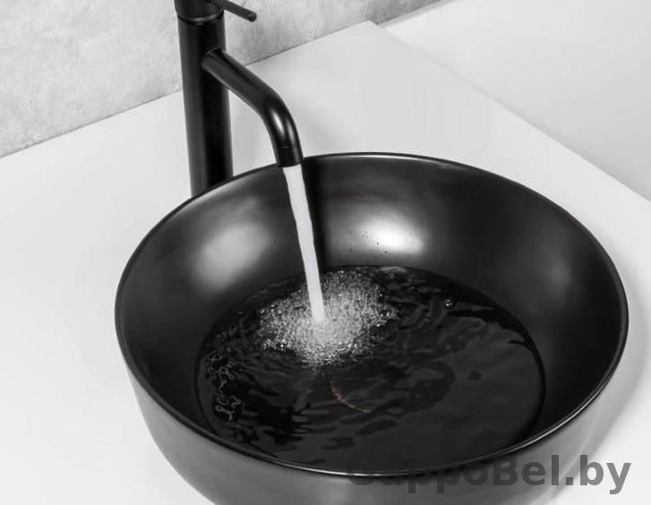Чёрная накладная чаша умывальник Gappo GT105-8, размер 41.5 * 41.5 *13.5 см, чёрная глазурь.