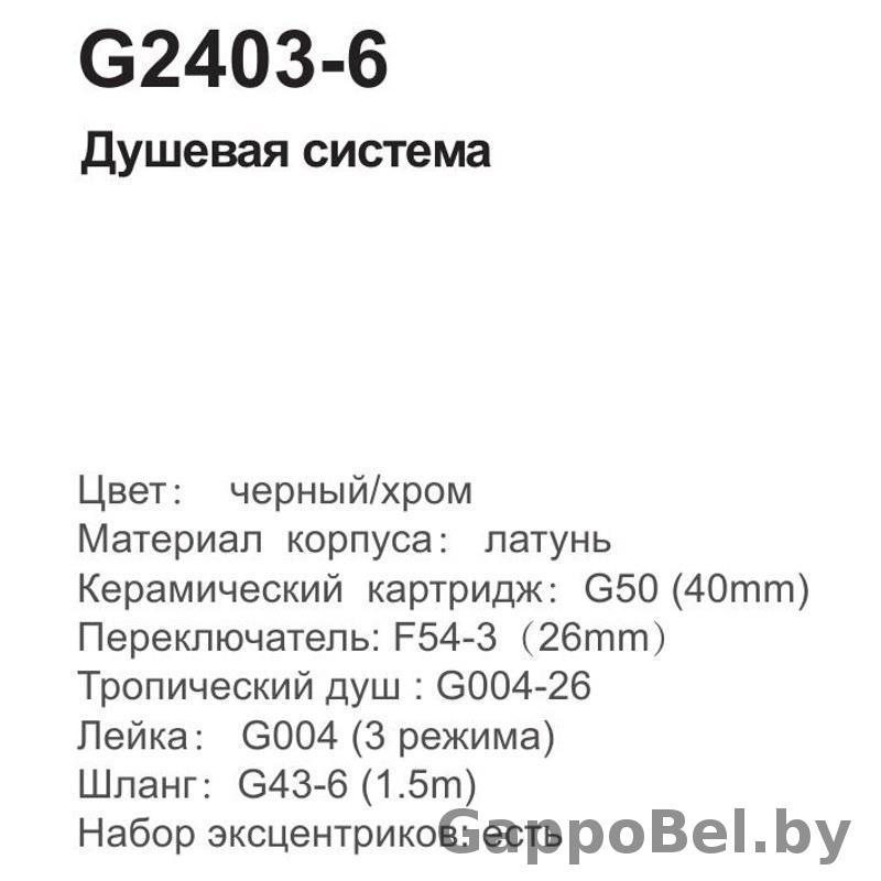 Душевая система Gappo G2403-6 в черном матовом цвете с хромом. Смеситель душевой системы Gappo G2403-6 выполнен из 100% латуни, в корпусе находится испанский керамический картридж Sedal. Модель комплектуется качественными тропической лейкой и ручным душем из ABS пластика.