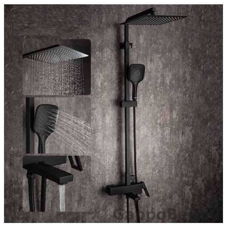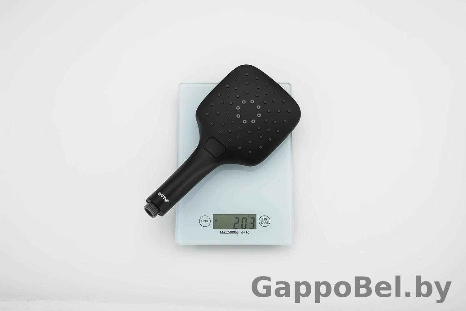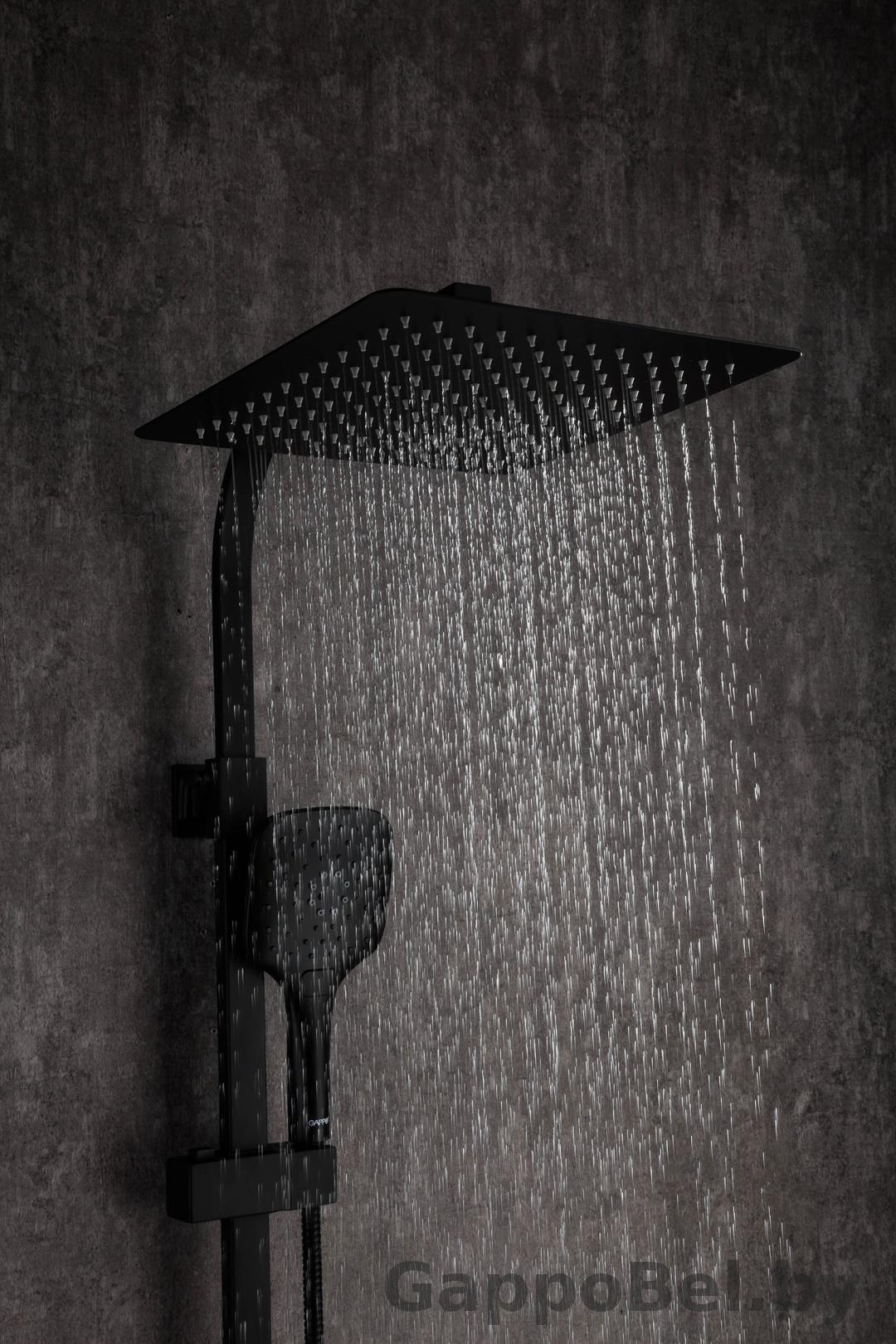 Чёрная душевая система Gappo G2407-6 с изливом и смесителем из латуни и испанским картриджем Sedal. Поворотный каскадный излив быстро наполняет ванную. Силиконовые сопла тропического душа и ручной лейки упрощают уход за системой, а ПВХ-шланг предотвращает накопление известкового камня и не повреждает внешний вид.