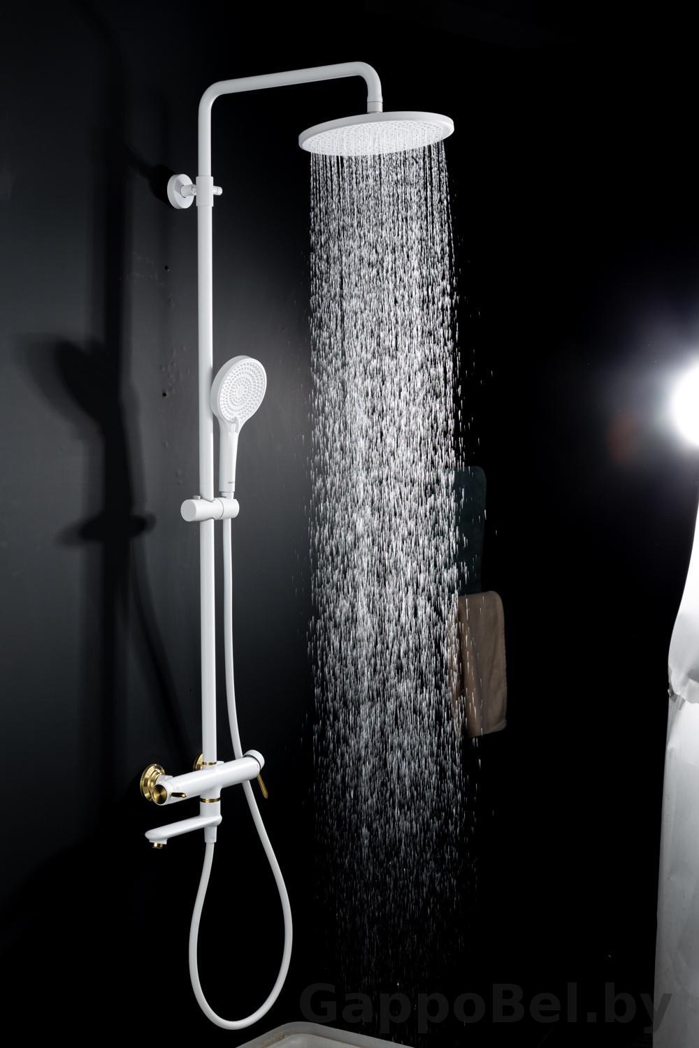 Душевая система Gappo G2409-83 — стильное и надёжное решение с верхним и ручным душем, латунным корпусом и элегантным дизайном в бело-золотых тонах.