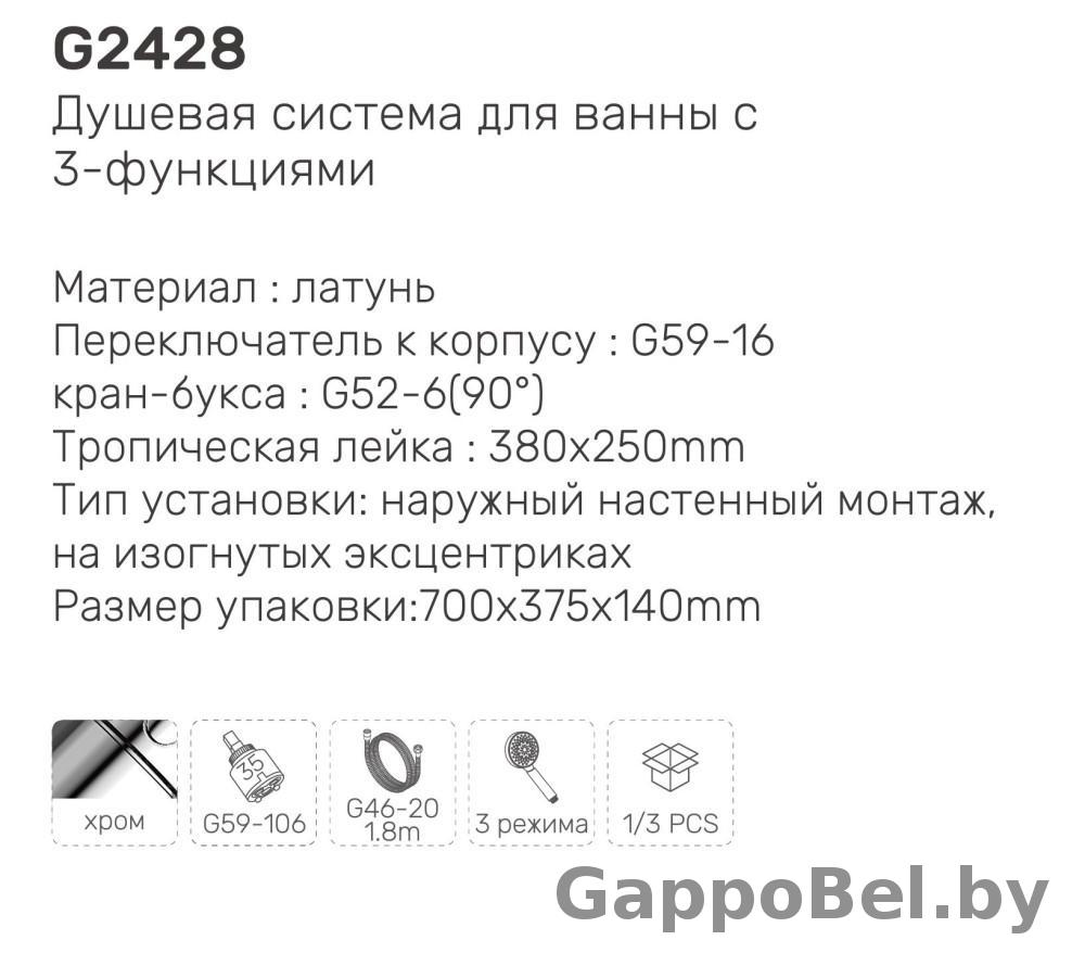 Душевая система Gappo G2428 в цвете хром. С регулировкой по высоте, сделана из латуни.