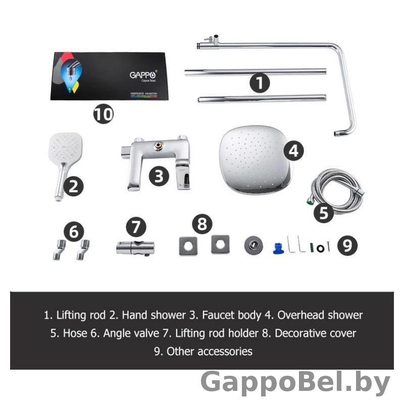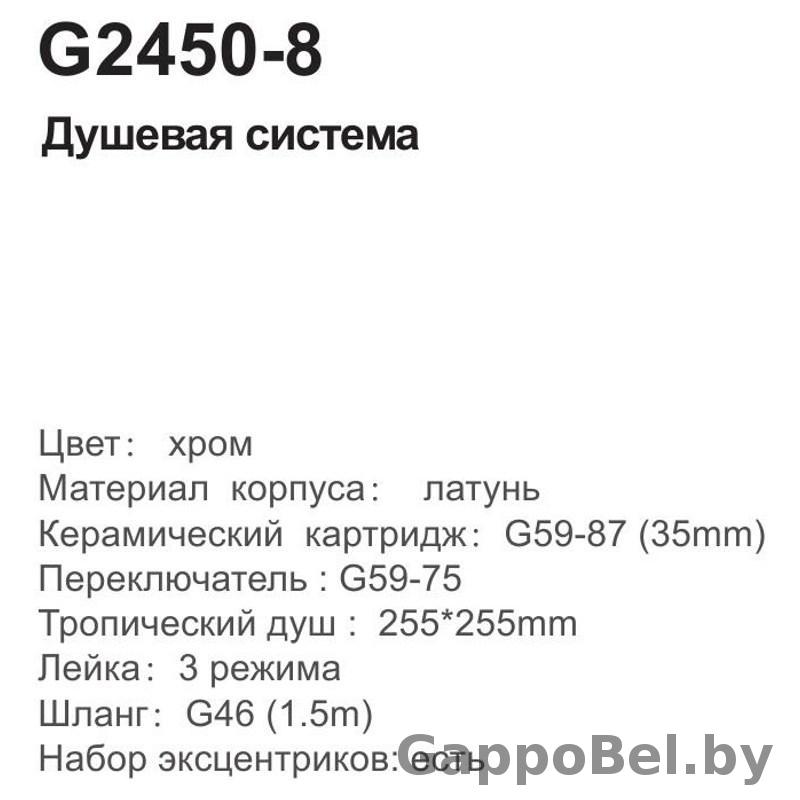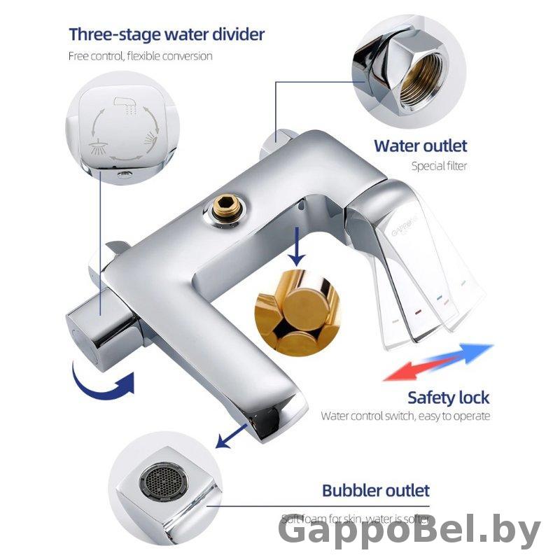 Душевая система Gappo G2450-8, цвет хром, смеситель из латуни, большая тропическая лейка 25 см * 25 см, переключение на душ поворотное.
