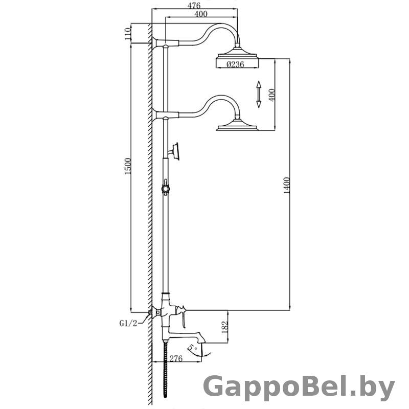 Душевая система со смесителем Gappo G2469 выполнена в стиле ретро, у нее нет возможности регулировки верхнего душа по высоте за счет конструкции верхнего крепления. Смеситель латунный с керамическим картриджем Sedal 35 мм. Обе лейки с силиконовыми форсунками, что даёт возможность легкой очистки от налета и камня выходных отверстий.