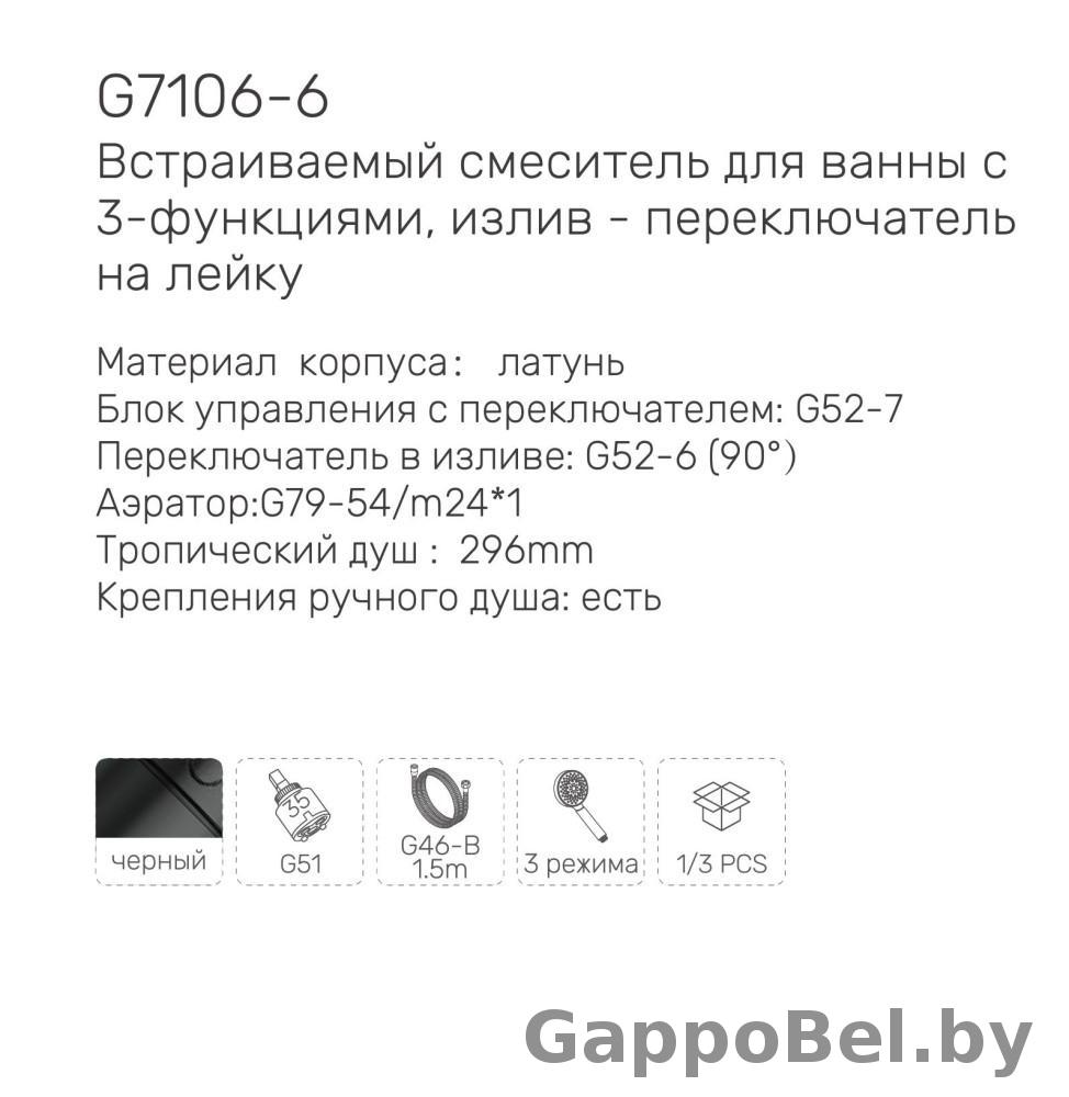 Душевая система Gappo G7106-6. Чёрный цвет, латунь.