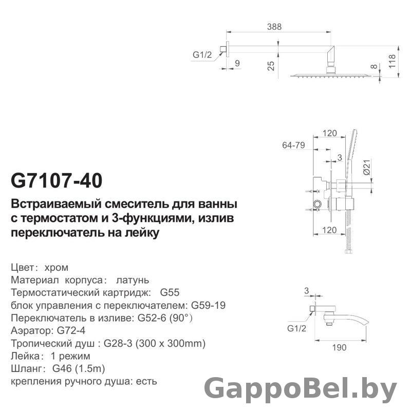 Душевой комплект с термостатом Gappo G7107-40 подходит для использования в частных домах и квартирах. Термостат Gappo удобен и практичен в использовании. Благодаря высокому качеству бренд популярен не только в странах СНГ, но и в Европе.