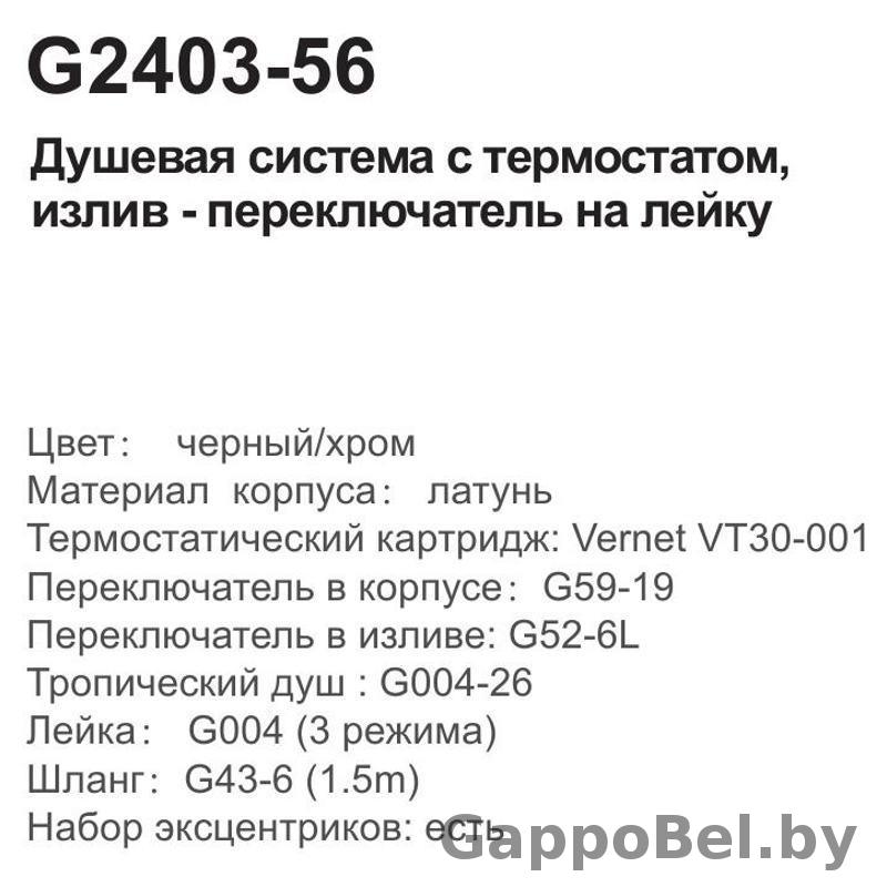 Душевая система с термостатом Gappo G2403-56 в черном цвете с хромом. В корпусе душевой системы из латуни предусмотрен поворотный смеситель для набора ванны. В комплекте Gappo G2403-56 привлекательный тропический душ диаметром 26 см.