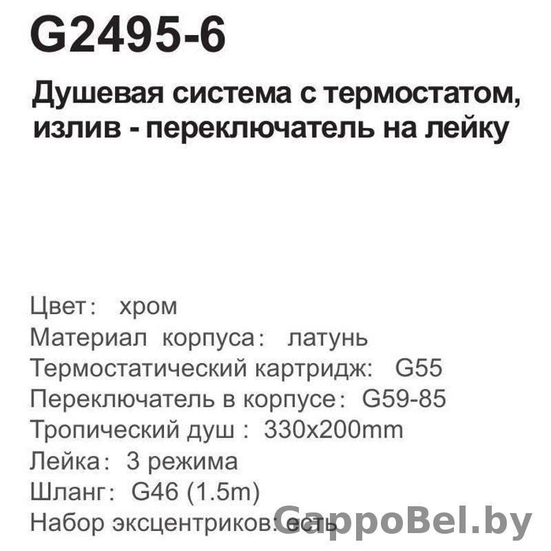 Душевая система с термостатом Gappo G2495-6 в цвете хром, большой тропический душ 30*20 см из ABS-пластика с системой легкой очистки, многорежимная ручная лейка, смеситель душевой системы без излива.