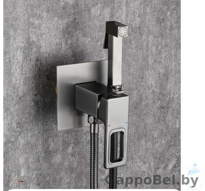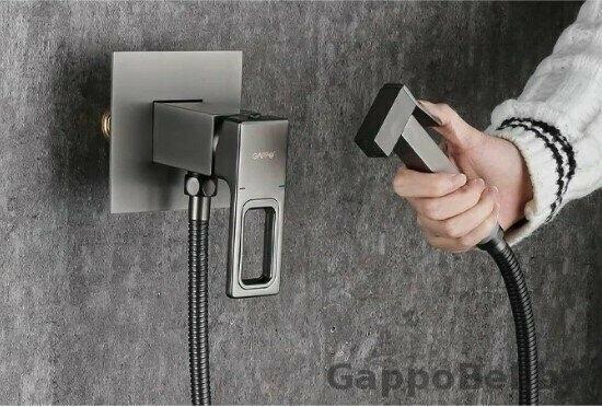 Гигиенический смеситель скрытый в стену Gappo G7217-9 , цвет оружейная сталь, изготовлен из латуни, металлическая лейка, шланг 120 см.