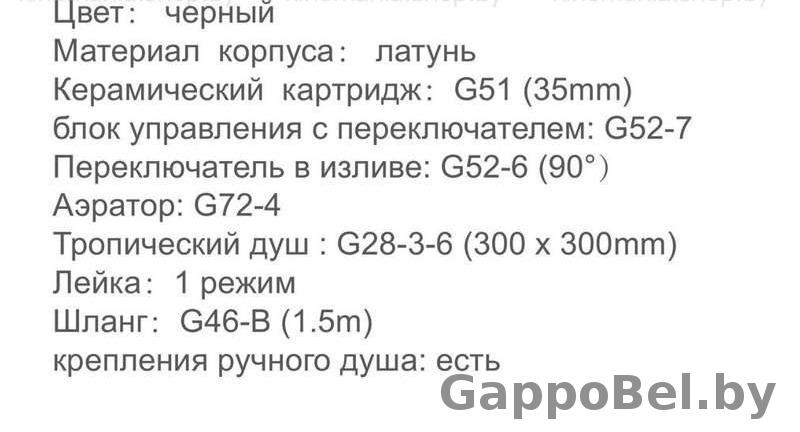 Скрытая душевая система чёрного цвета Gappo G7107-6, изготовлена из латуни, большой тропический душ 30*30 см, однорежимная лейка из ABS-пластика.
