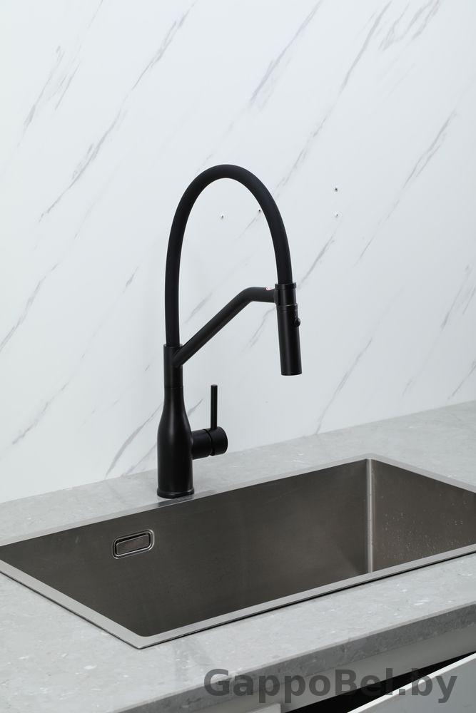Смеситель для кухни с гибким изливом Gappo G4098-16. Гибкий поворотный излив, плавное однорычажное управление и надежный керамический картридж обеспечивают комфорт в использовании.