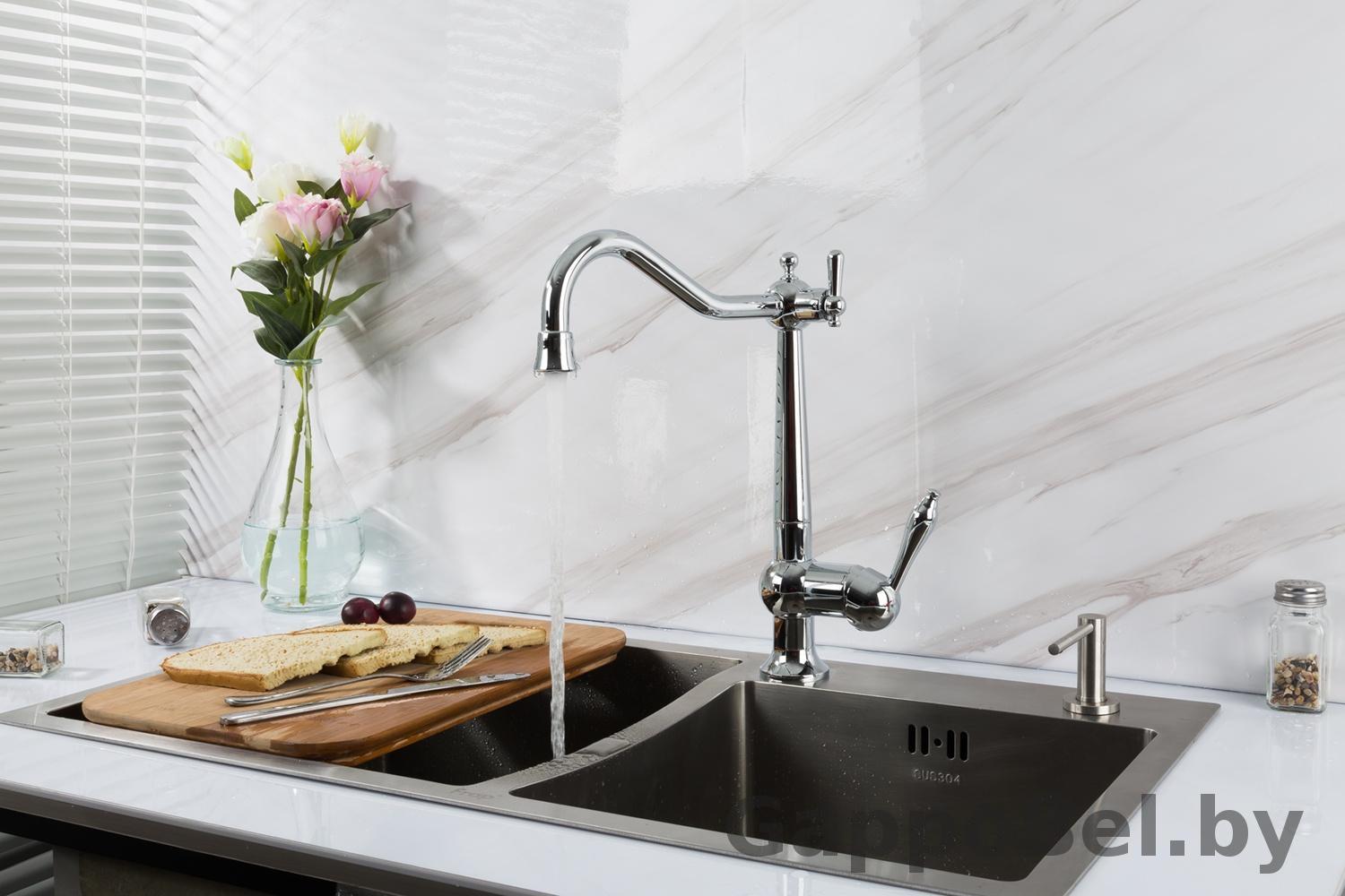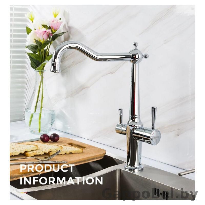 Смеситель для кухни с подключением к фильтру питьевой воды Gappo G4398-14, цвет хром, смеситель изготовлен из латуни.