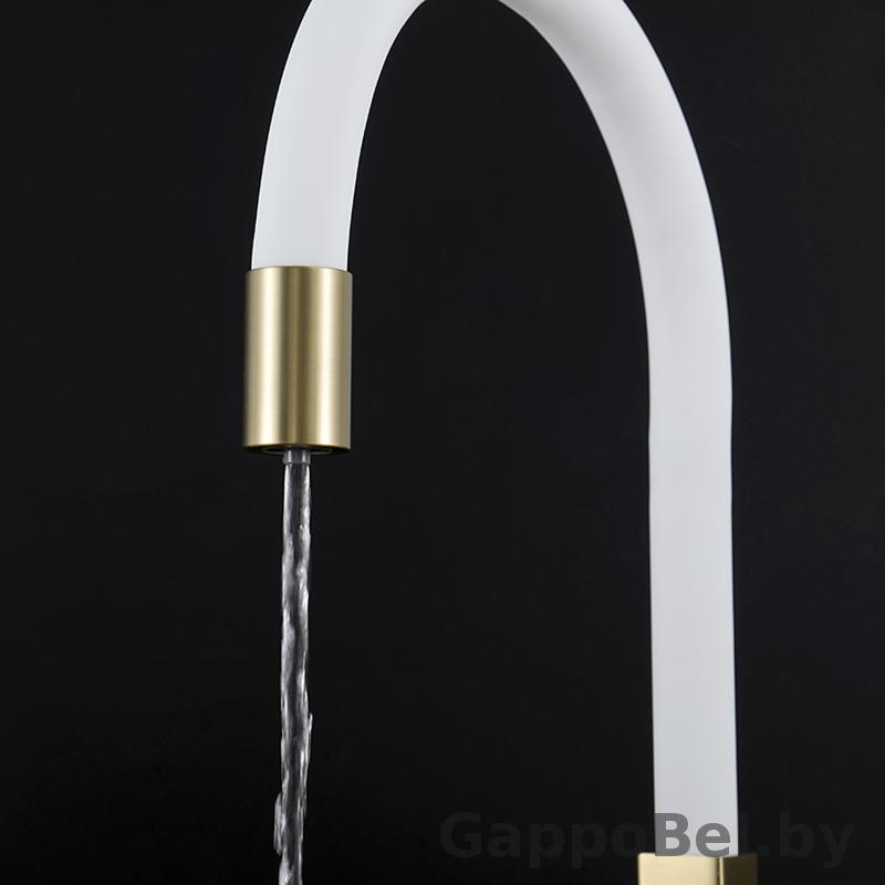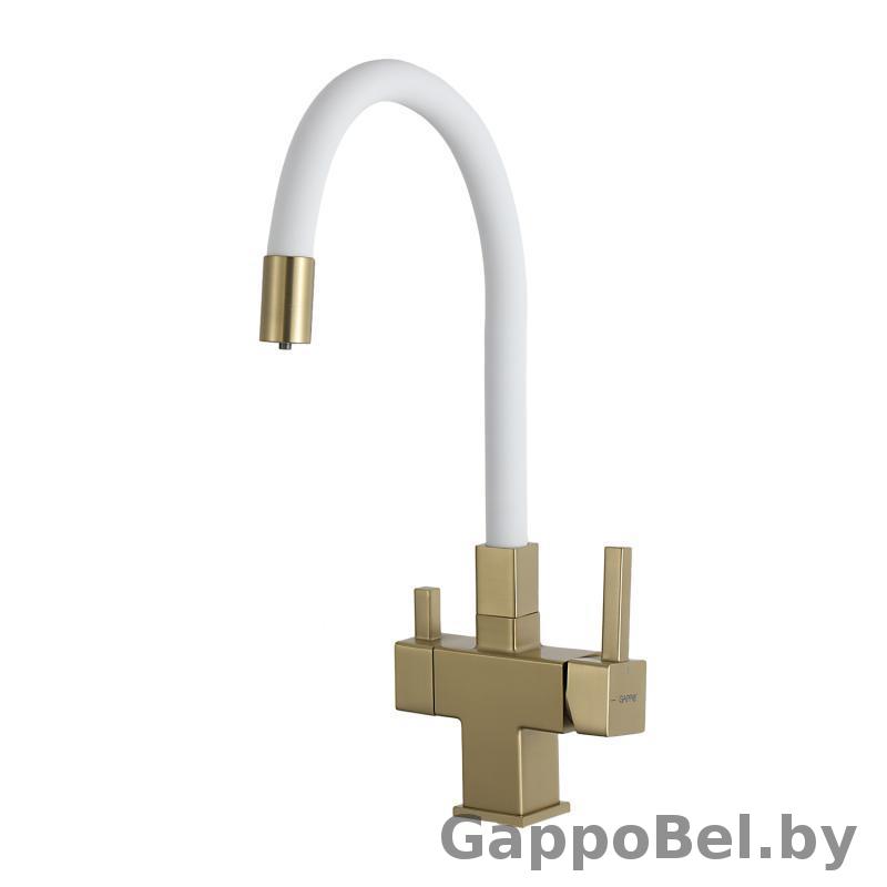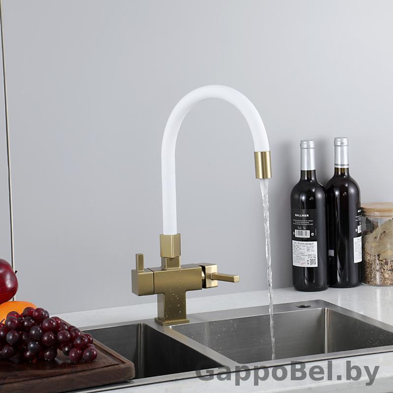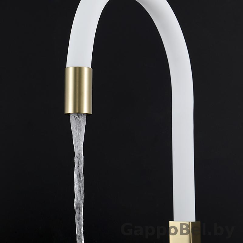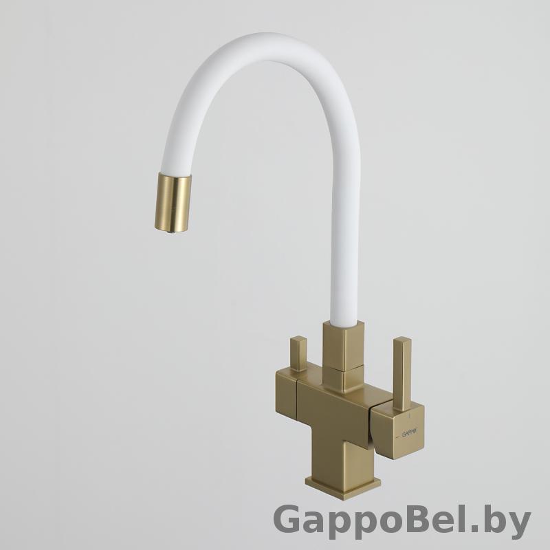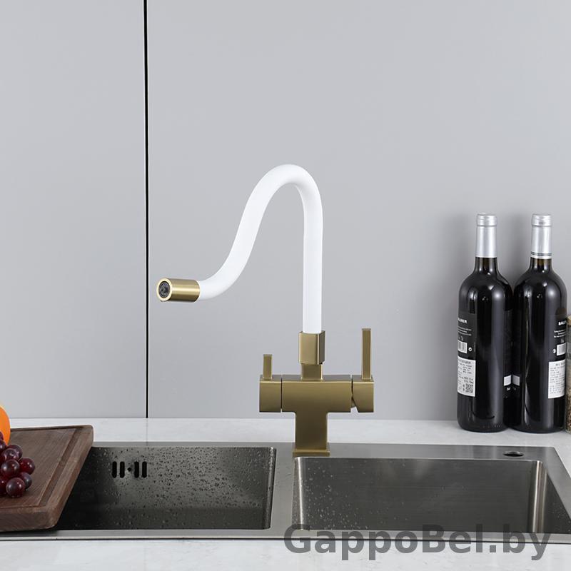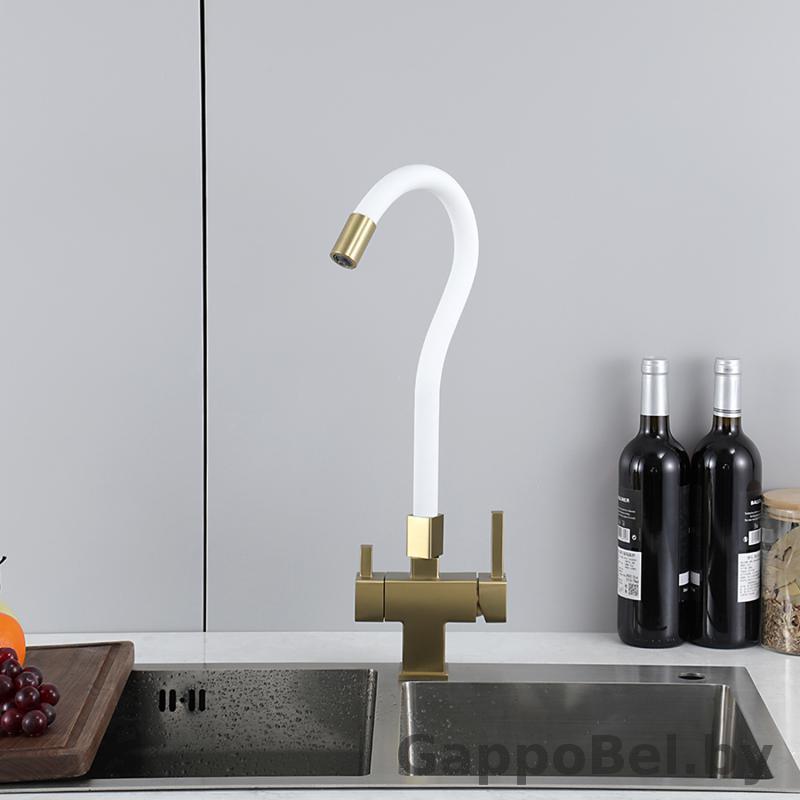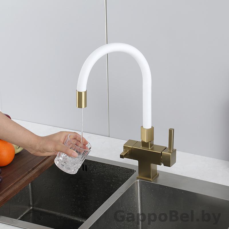 Смеситель для кухни с подключением питьевой воды Gappo G4395-33 (золотой), гибкий силиконовый излив, надежный латунный корпус, керамический картридж 35 мм.