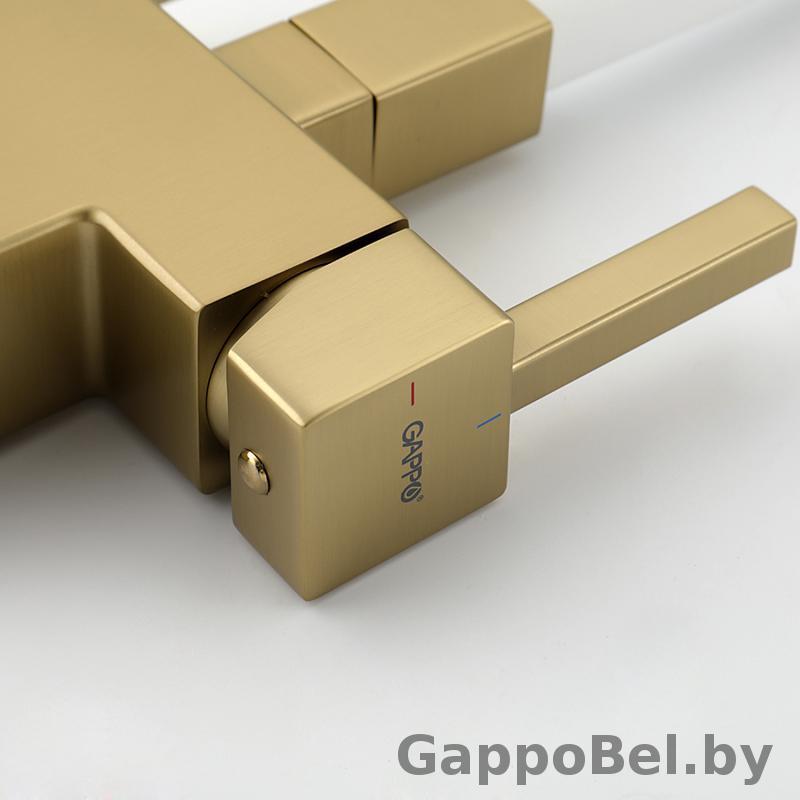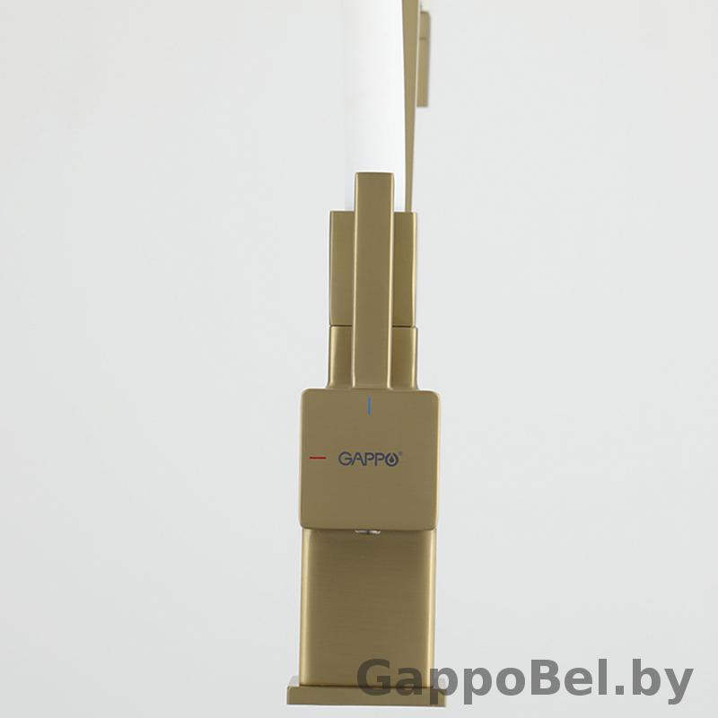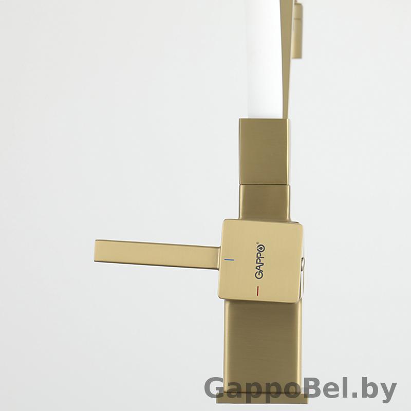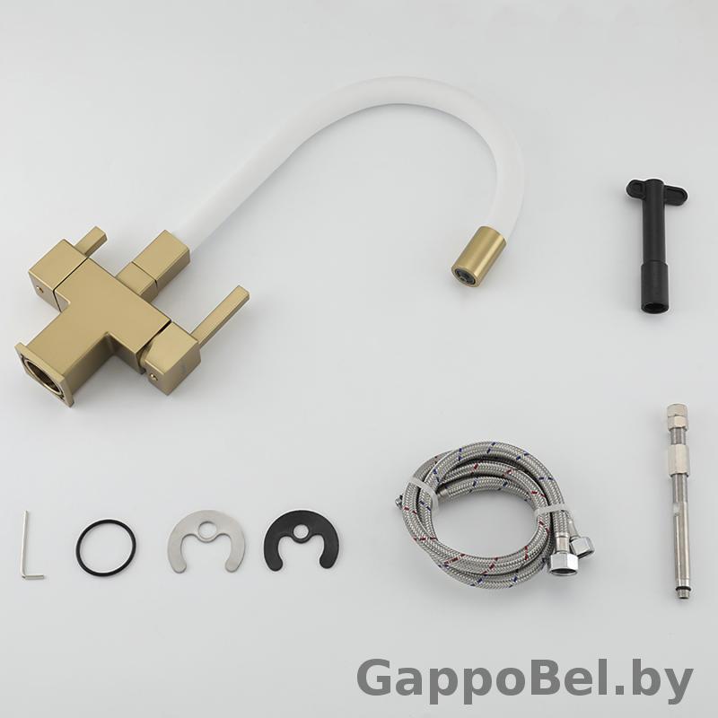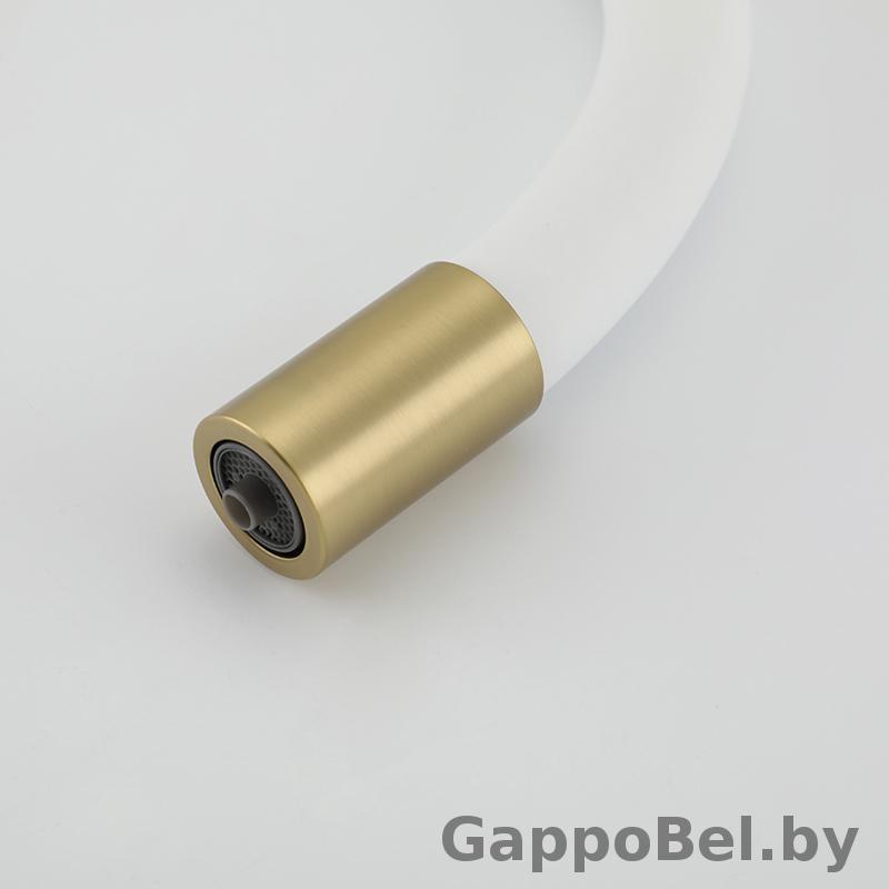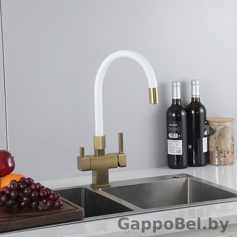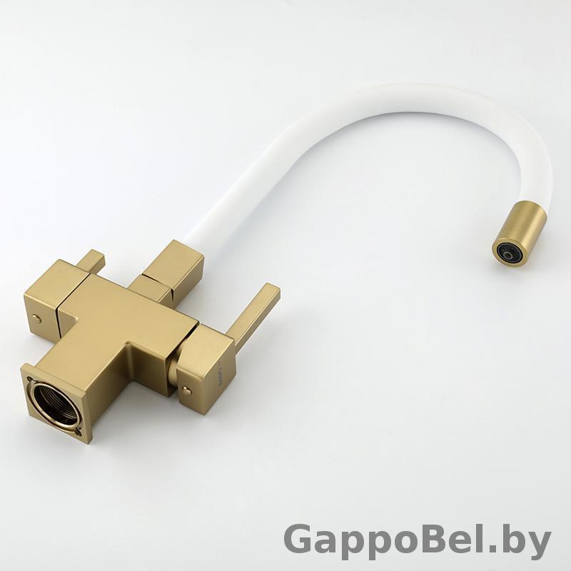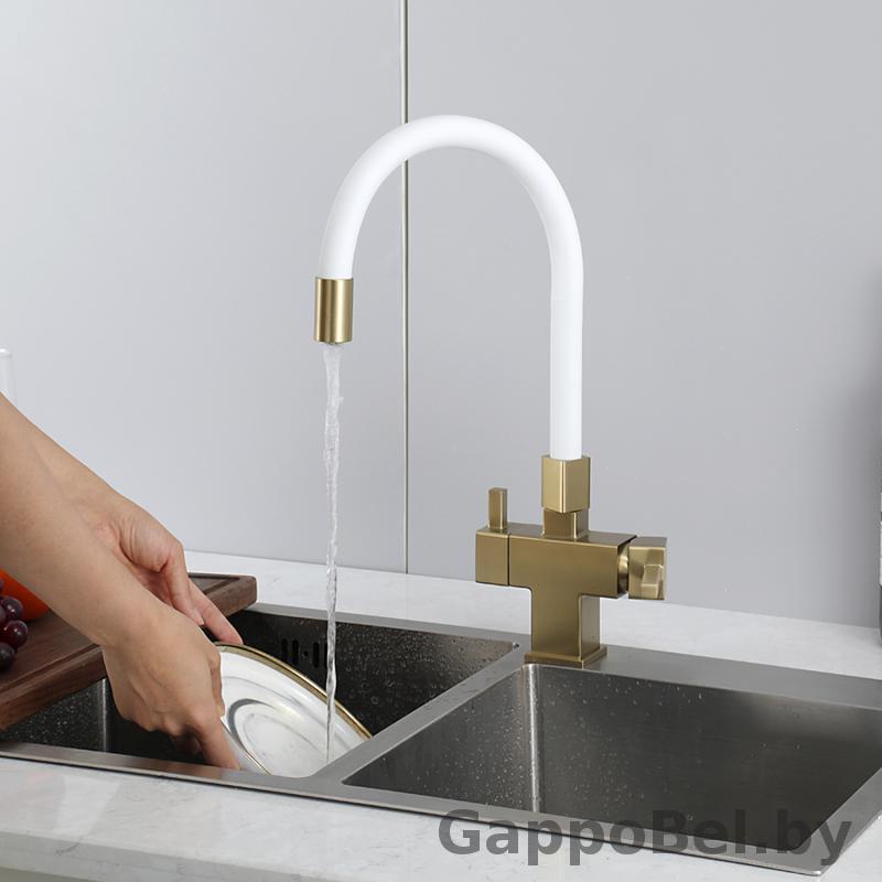 Смеситель для кухни с подключением питьевой воды Gappo G4395-33 (золотой), гибкий силиконовый излив, надежный латунный корпус, керамический картридж 35 мм.