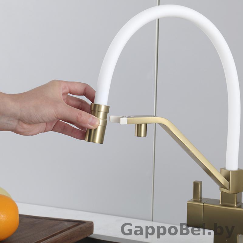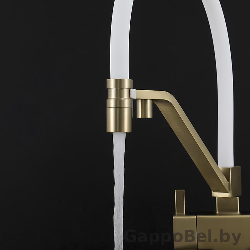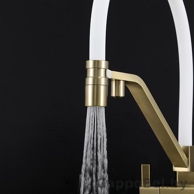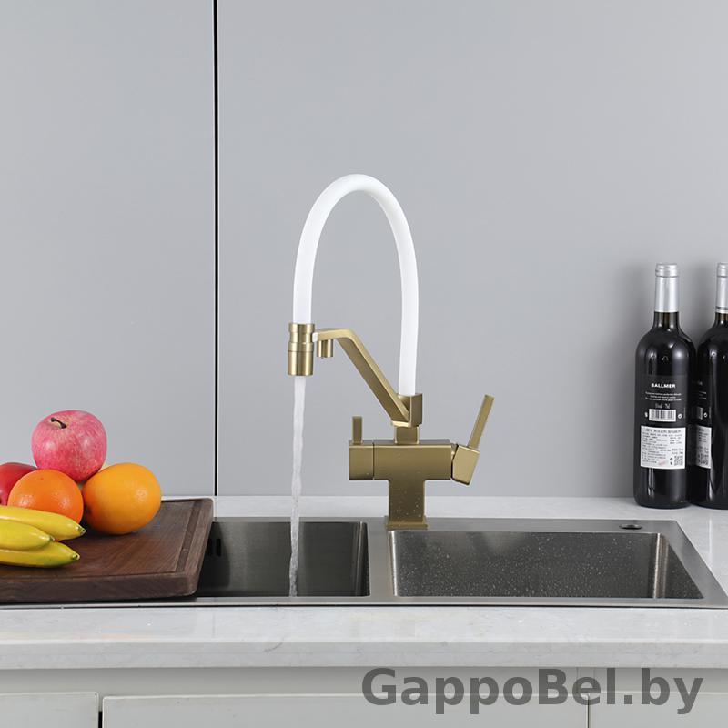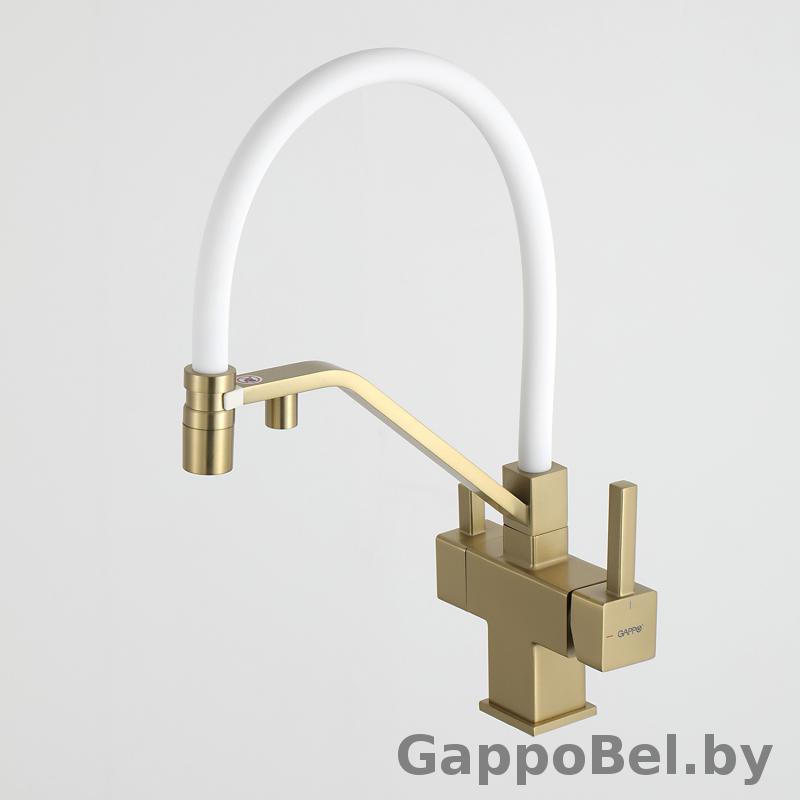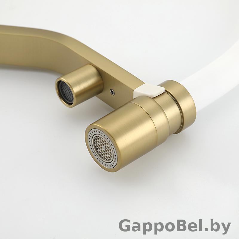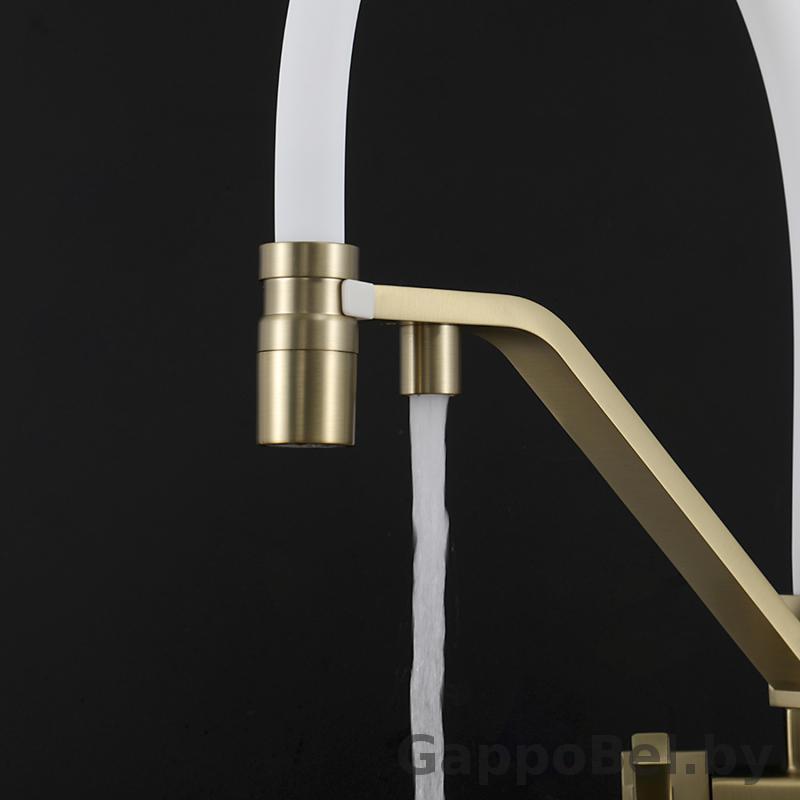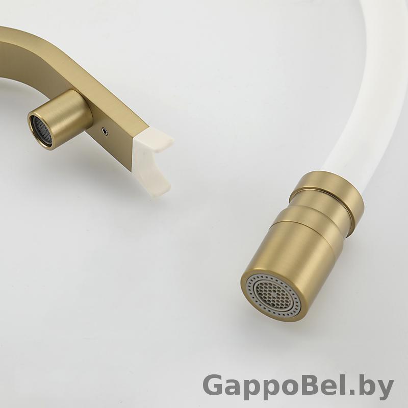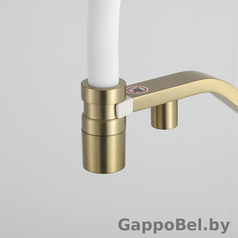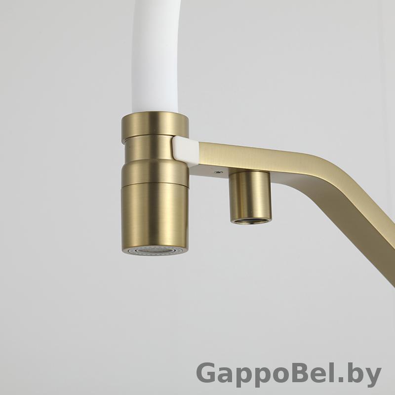 Смеситель для кухни с подключением питьевой воды Gappo G4395-63 (золотой), надежный латунный корпус, керамический картридж 35 мм, излив крепится на магнитном держателе, аэратор с двумя режимами работы.
