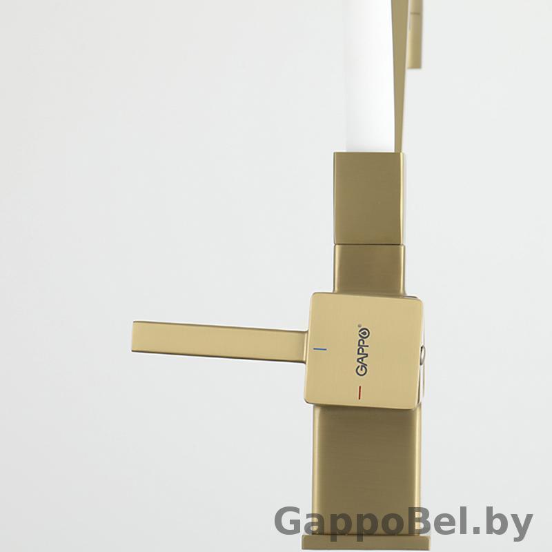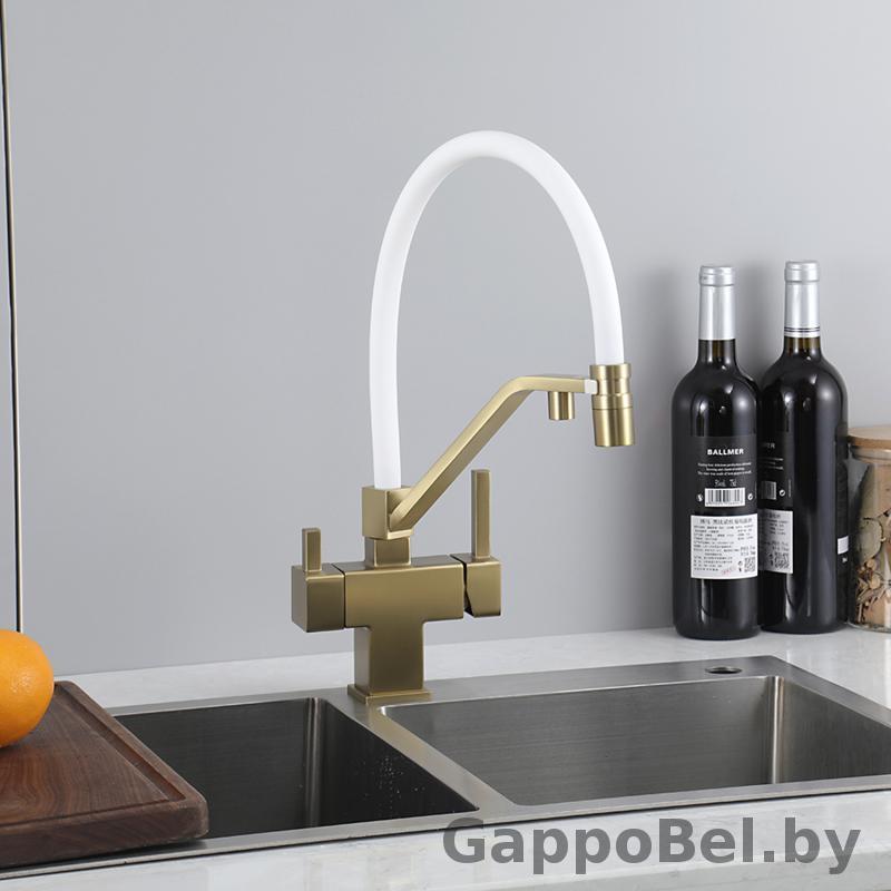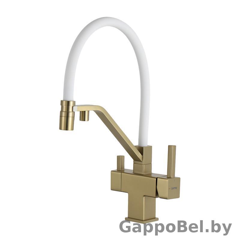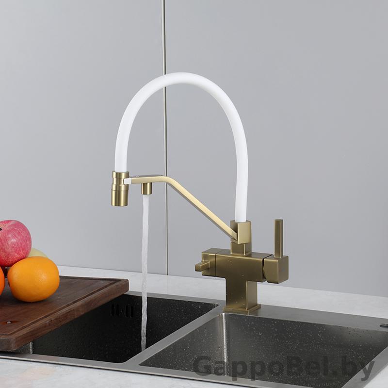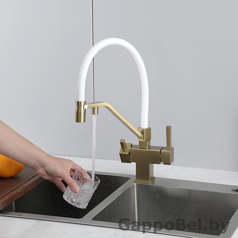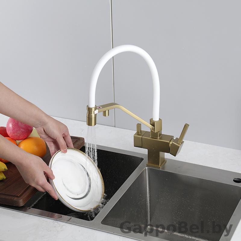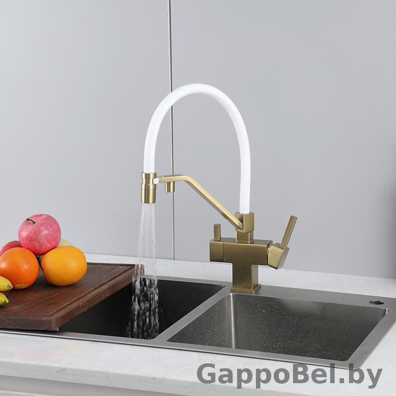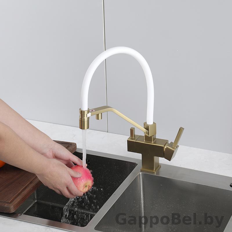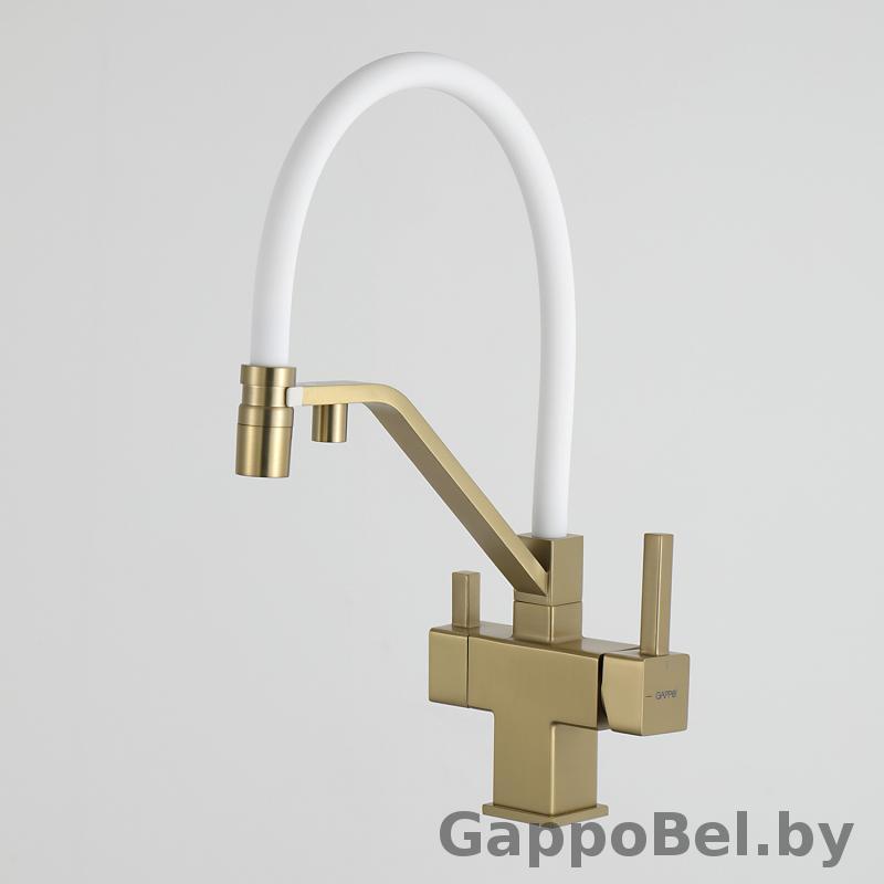 Смеситель для кухни с подключением питьевой воды Gappo G4395-63 (золотой), надежный латунный корпус, керамический картридж 35 мм, излив крепится на магнитном держателе, аэратор с двумя режимами работы.