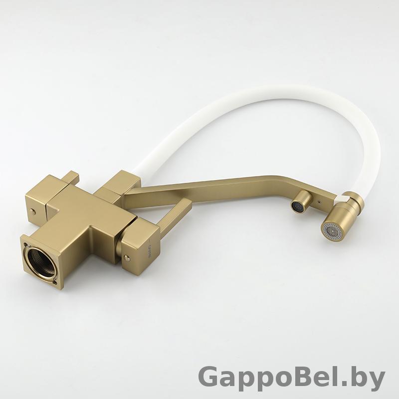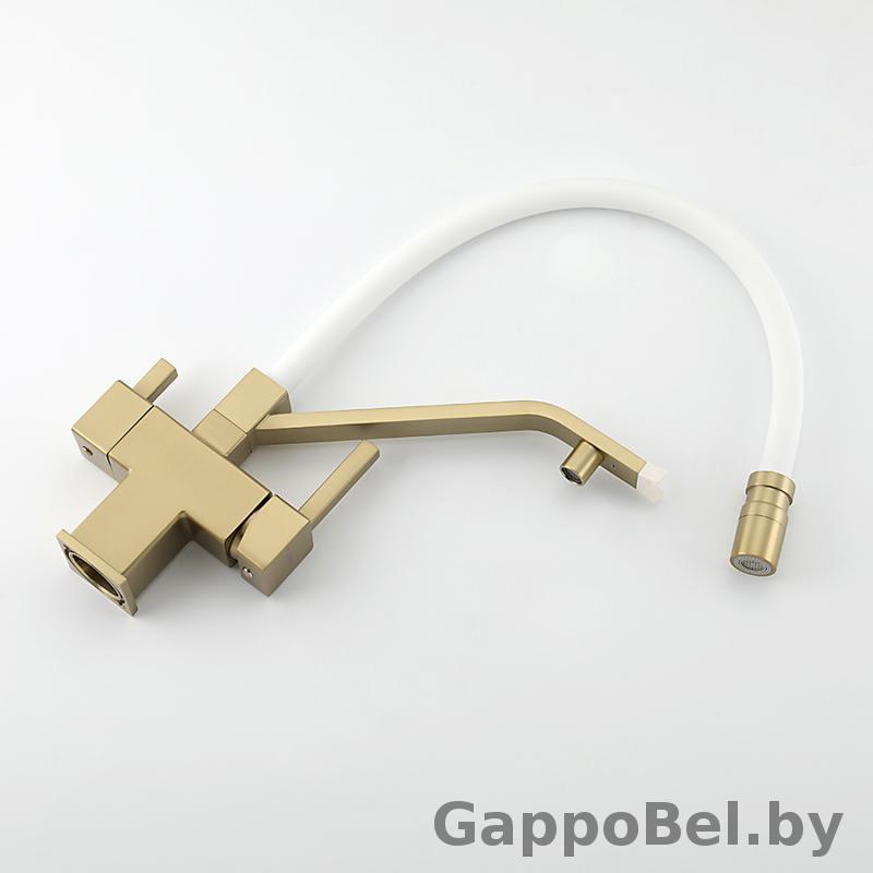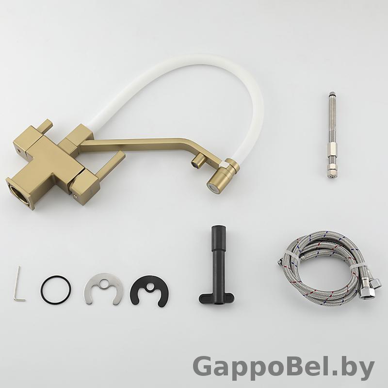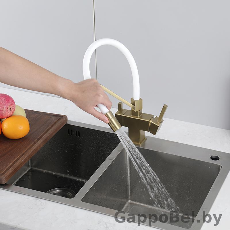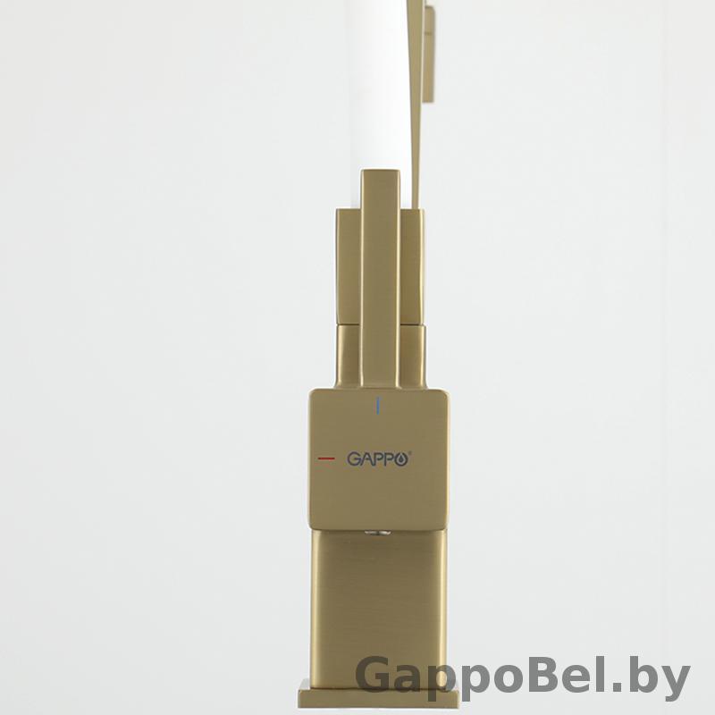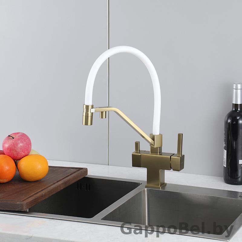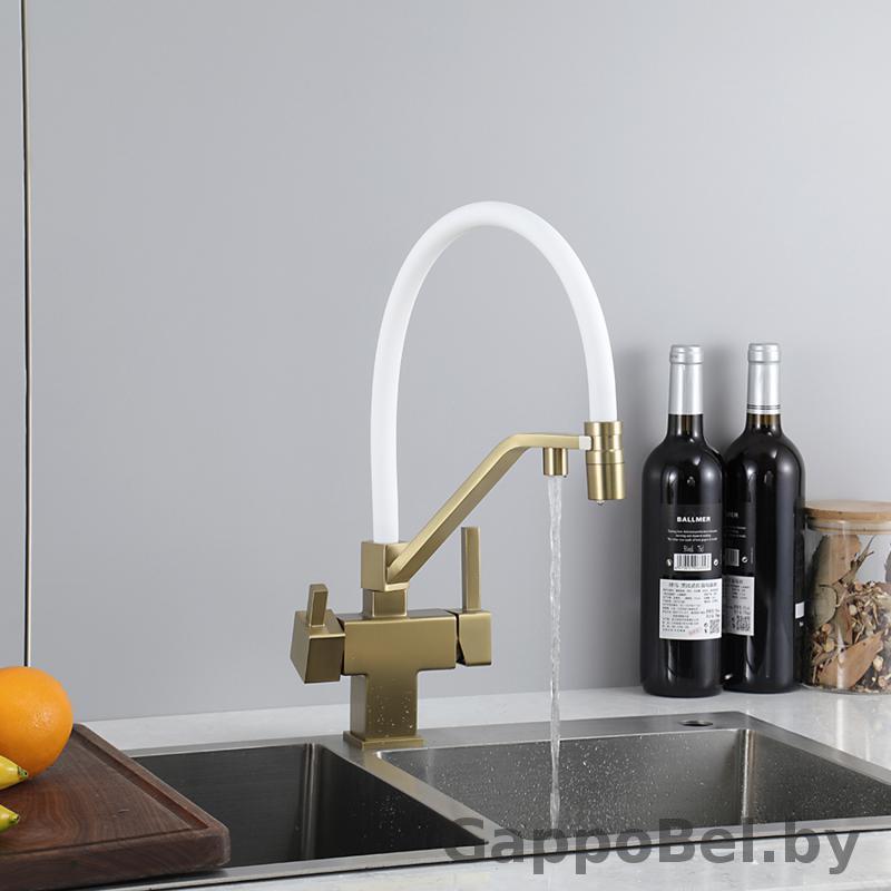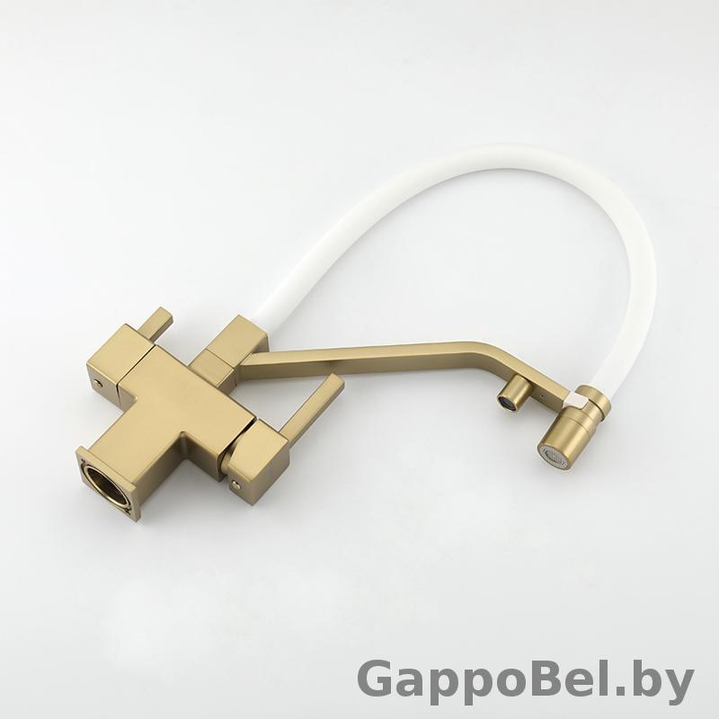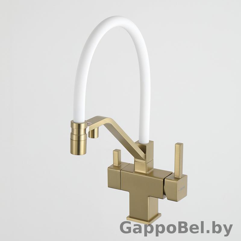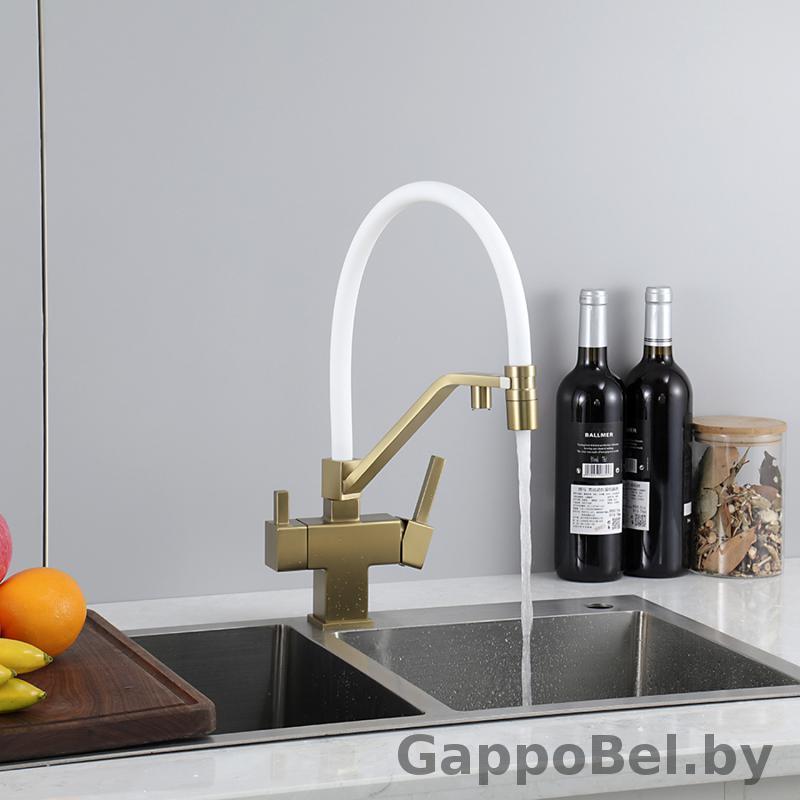 Смеситель для кухни с подключением питьевой воды Gappo G4395-63 (золотой), надежный латунный корпус, керамический картридж 35 мм, излив крепится на магнитном держателе, аэратор с двумя режимами работы.