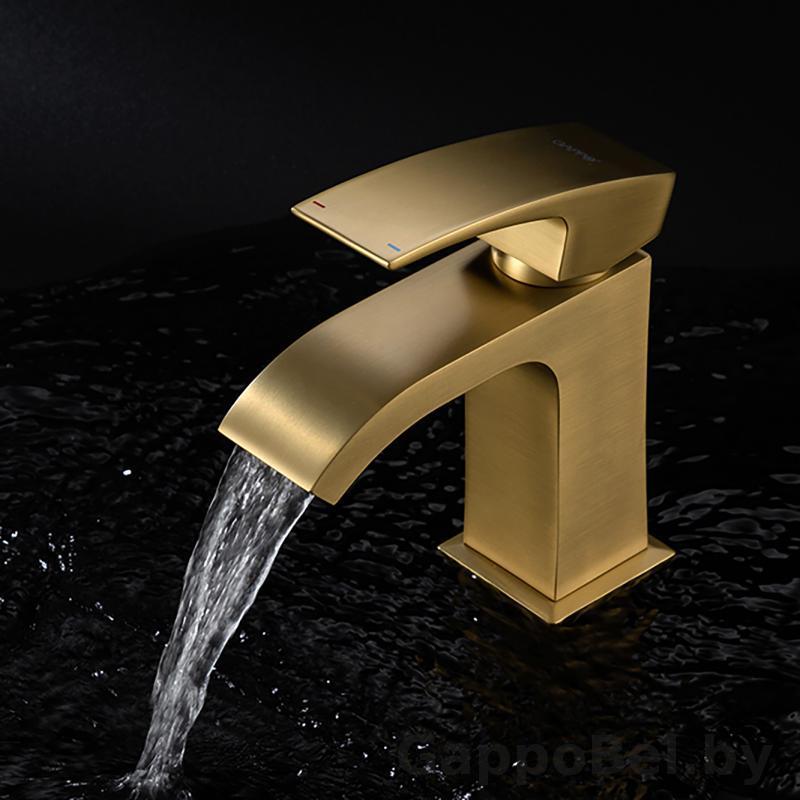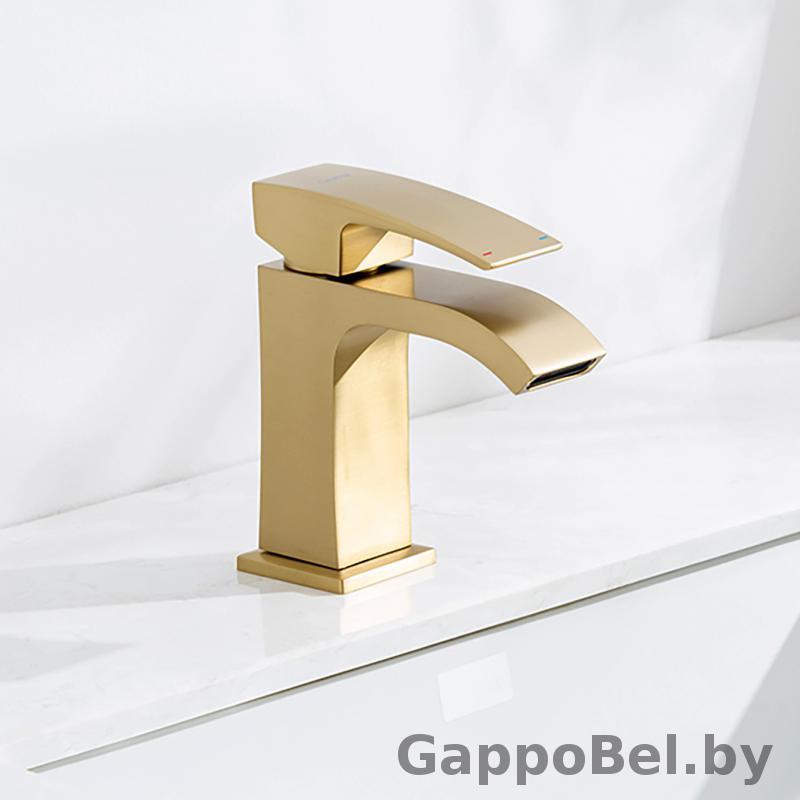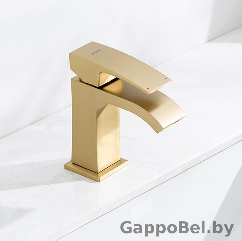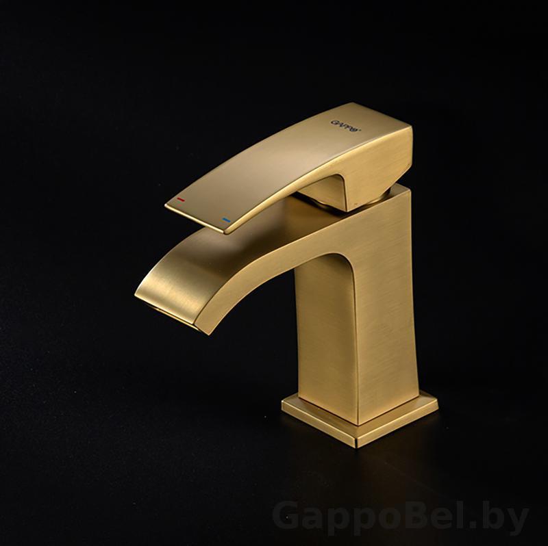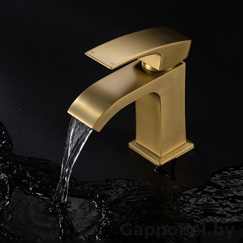 Однорычажный смеситель для умывальника Gappo G1007-33, цвет золотой сатин, излив водопад.