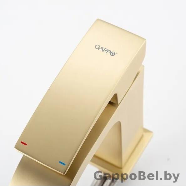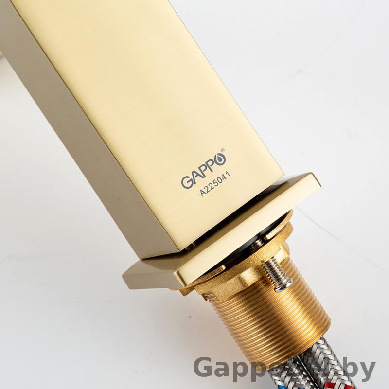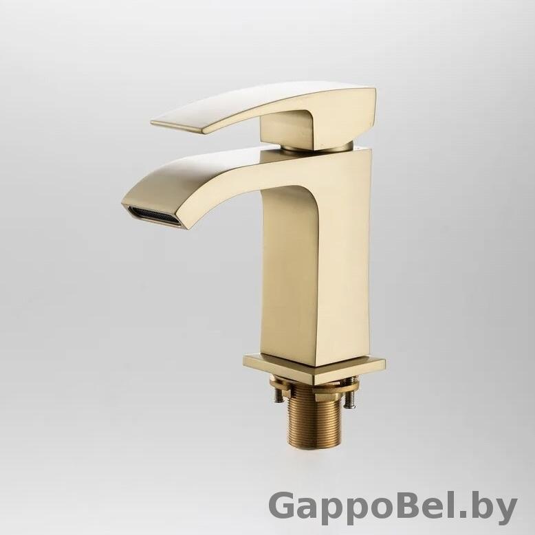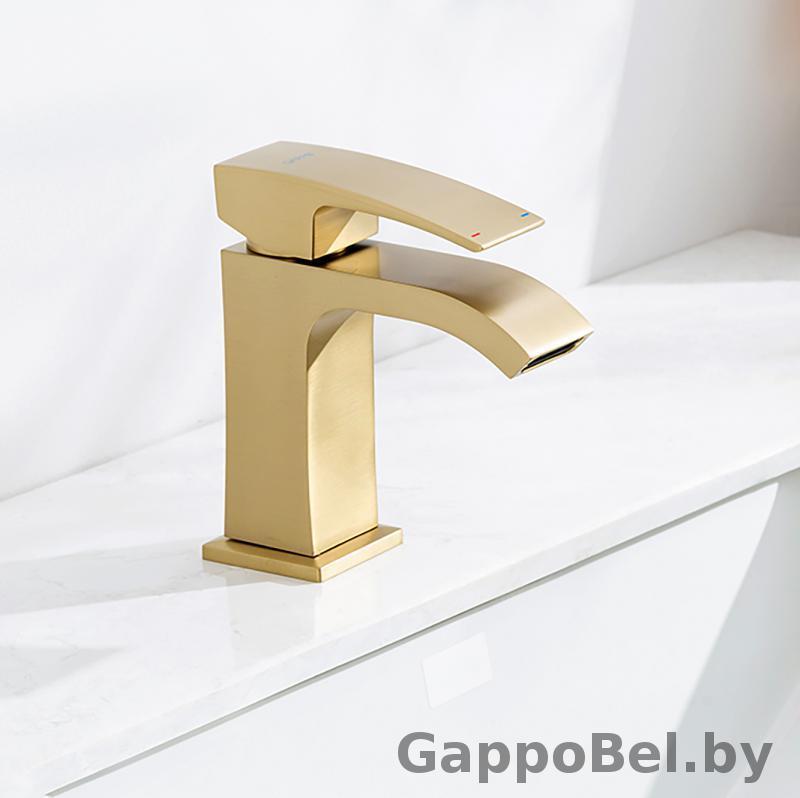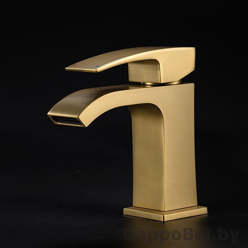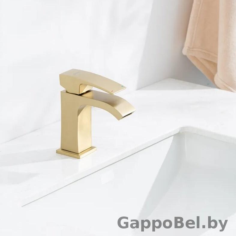 Однорычажный смеситель для умывальника Gappo G1007-33, цвет золотой сатин, излив водопад.