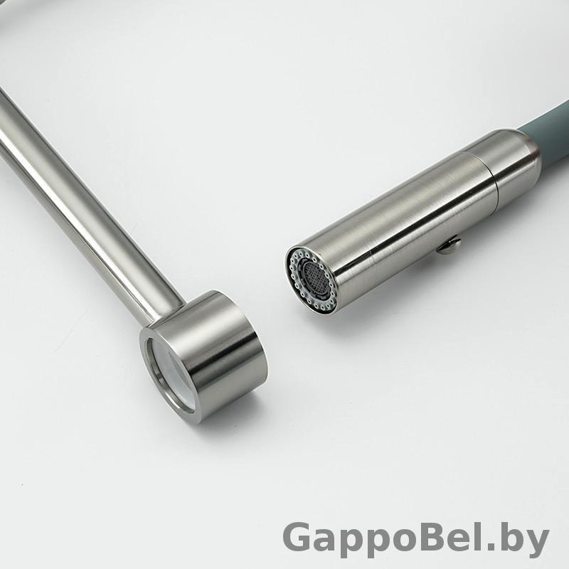 Смеситель для кухни с гибким изливом Gappo G4398-55 изготовлен из нержавеющей стали, имеет цвет сатин.