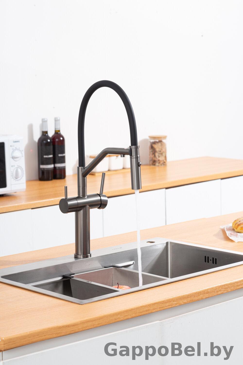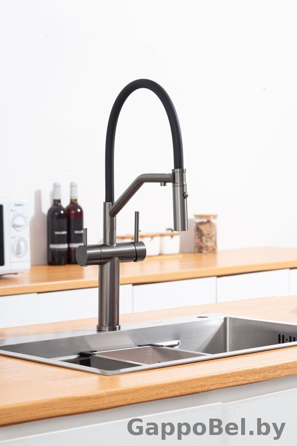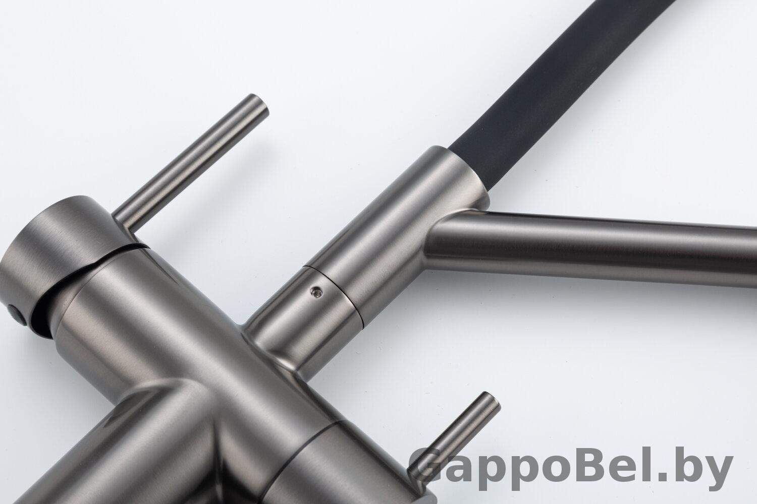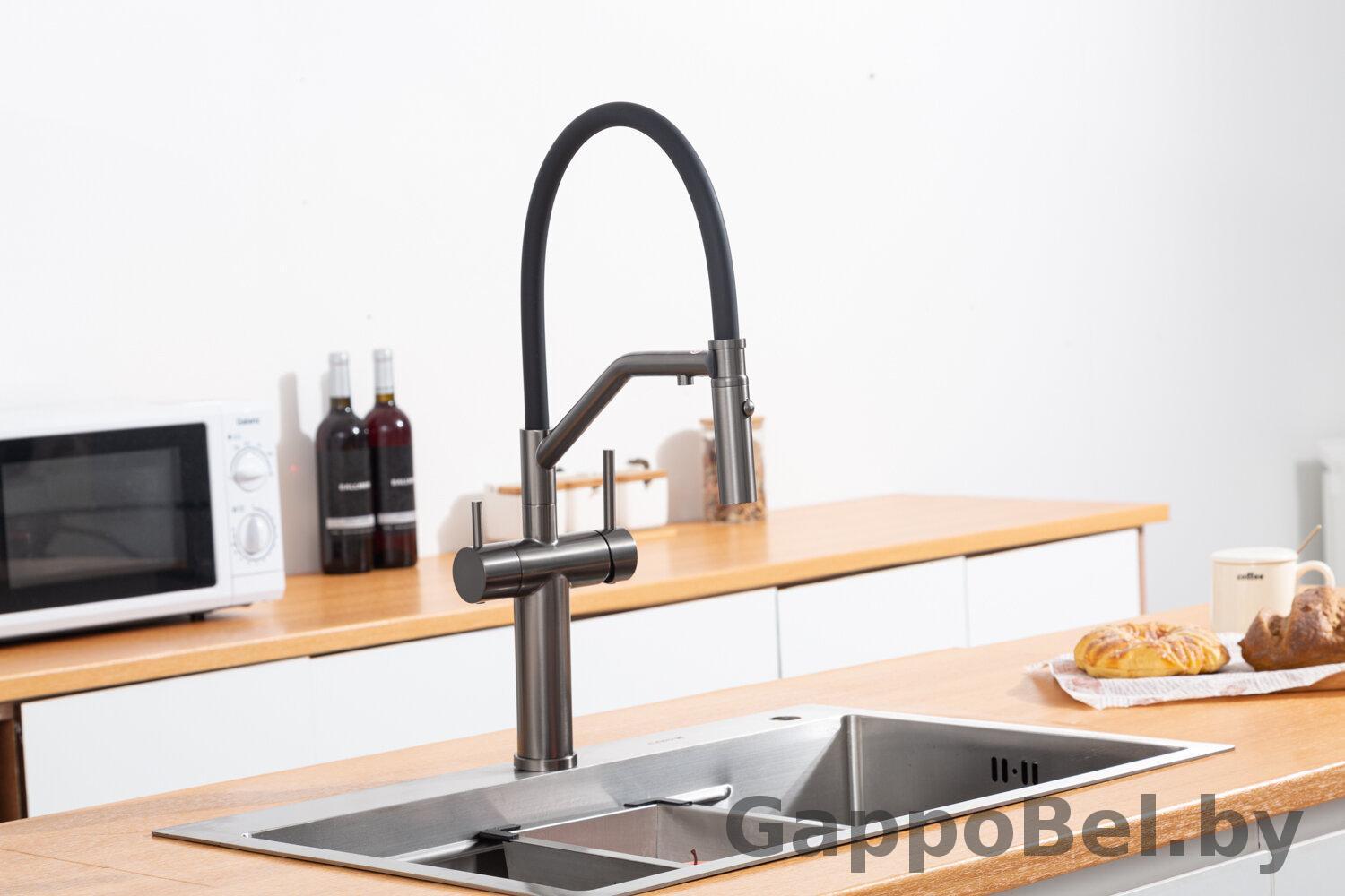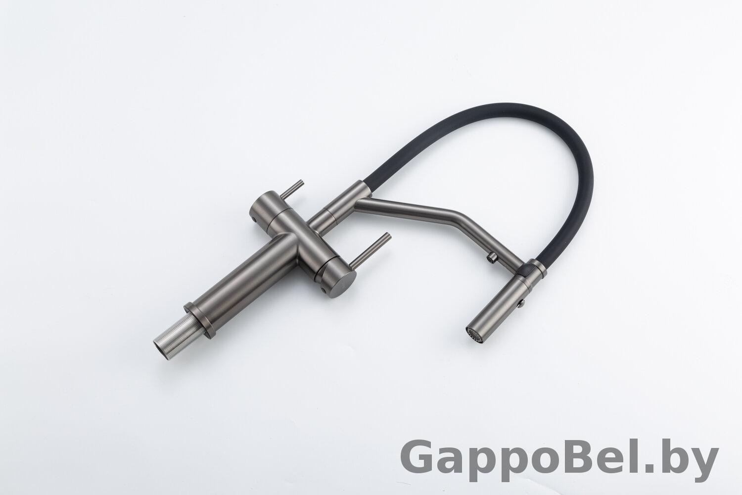 Смеситель для кухонной мойки Gappo G4399-89 с гибким изливом и подключением фильтра питьевой воды, оружейная сталь.