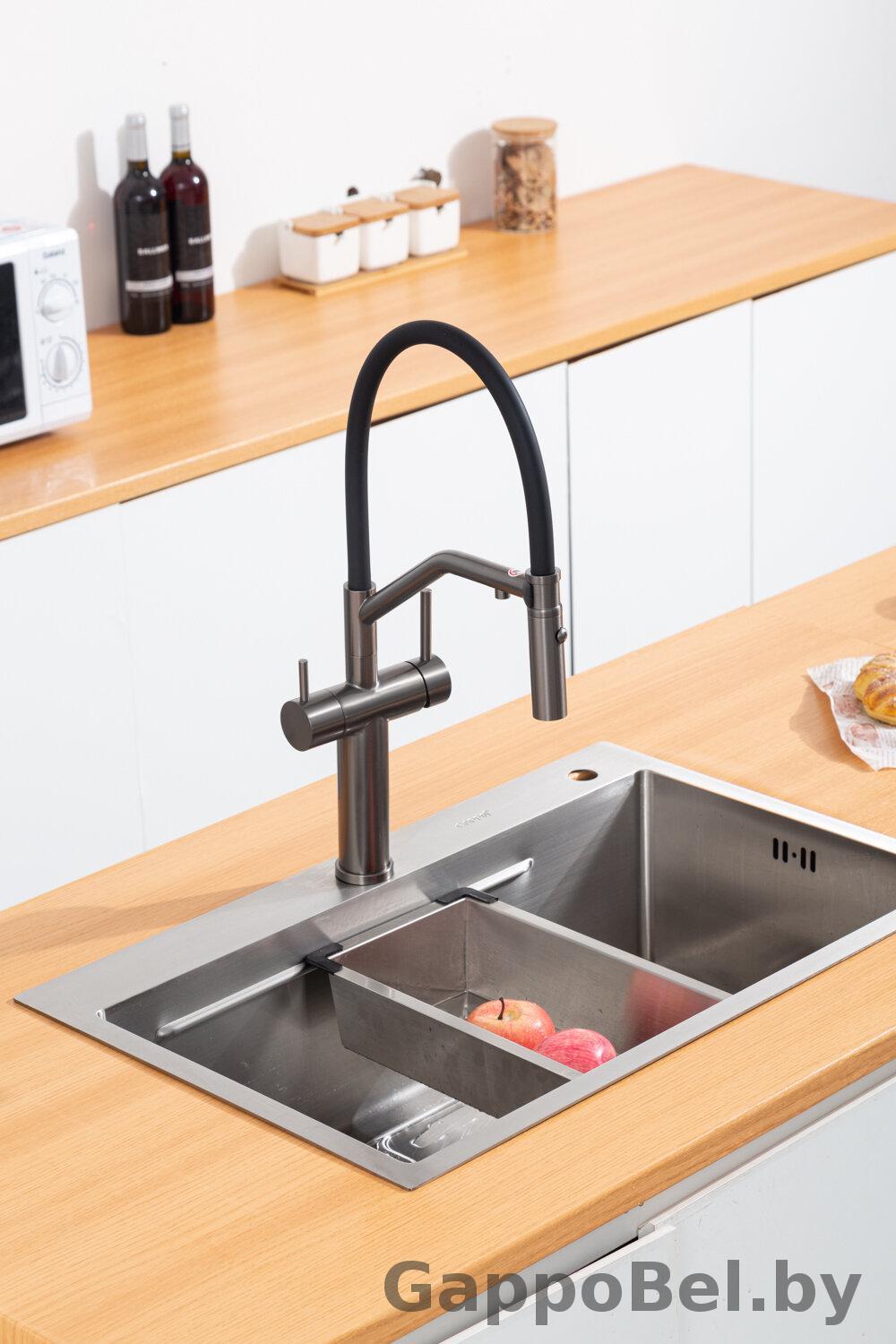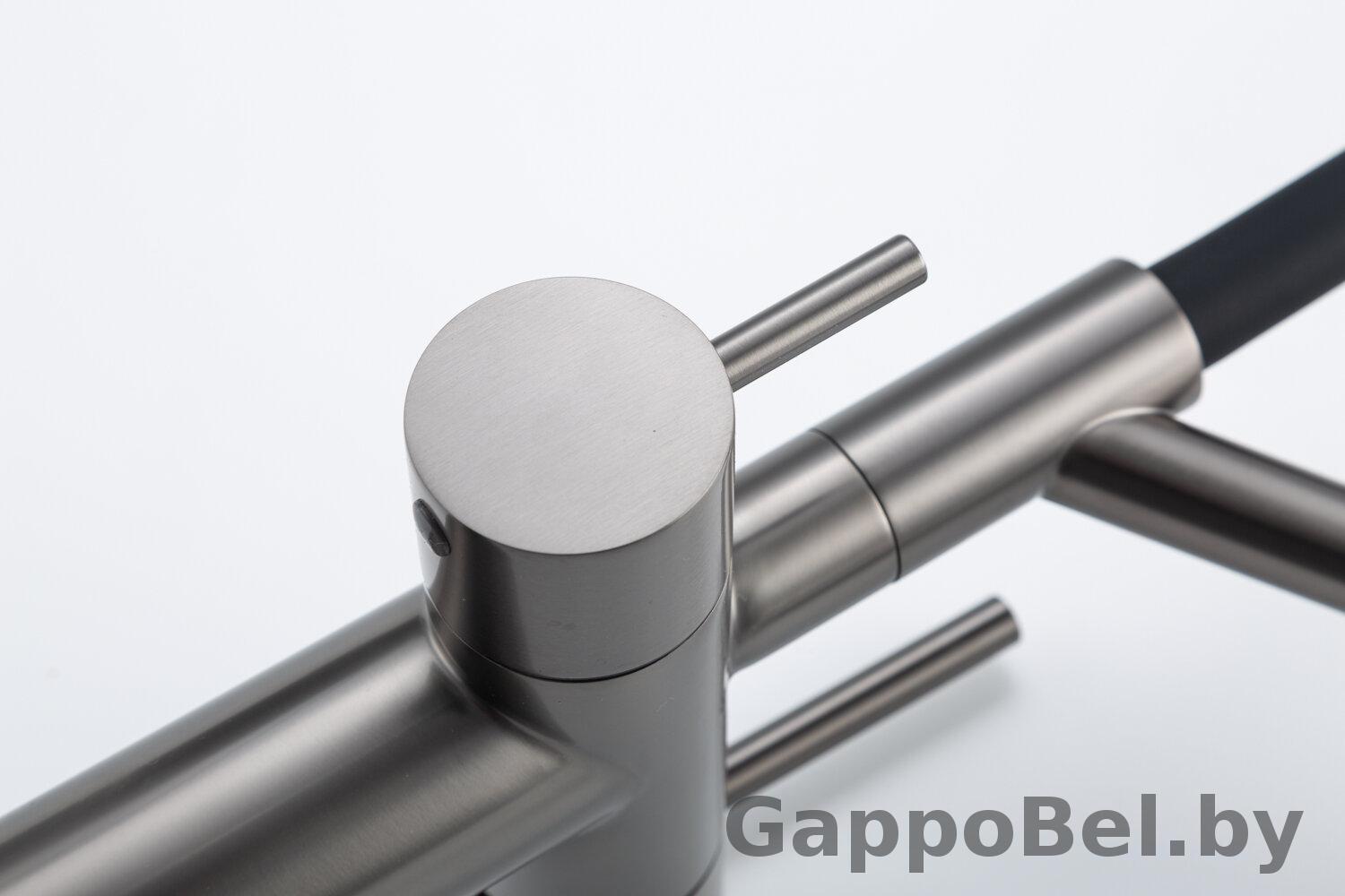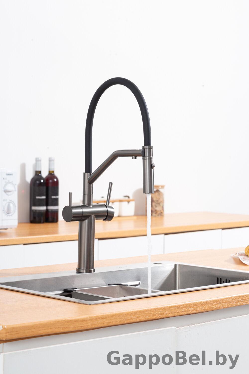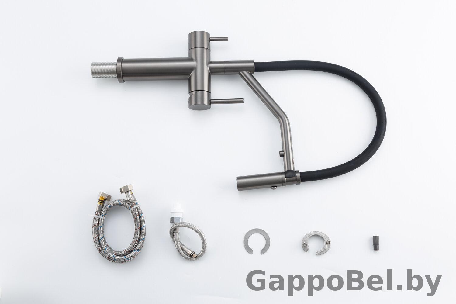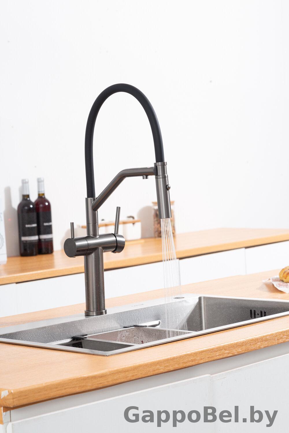 Смеситель для кухонной мойки Gappo G4399-89 с гибким изливом и подключением фильтра питьевой воды, оружейная сталь.
