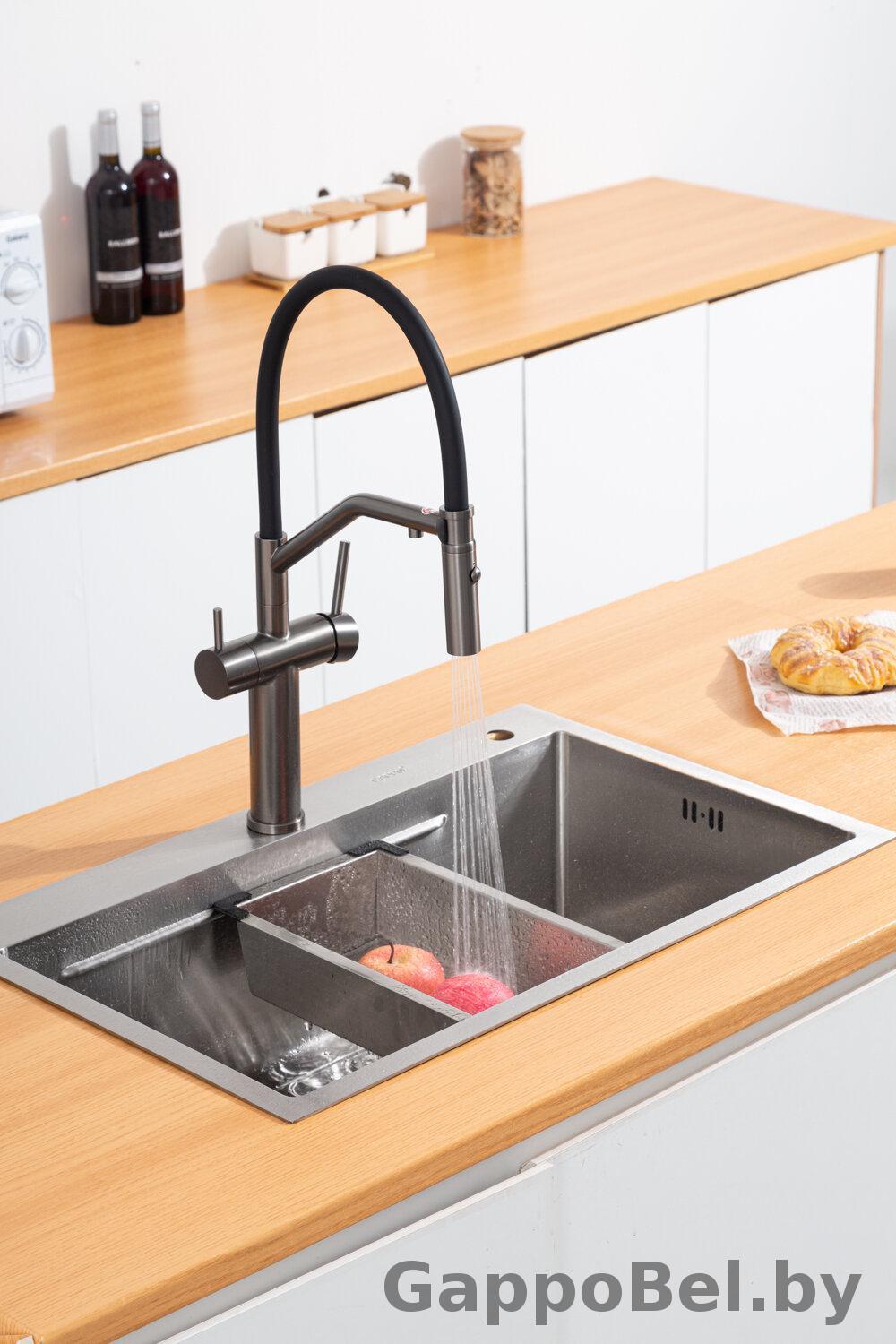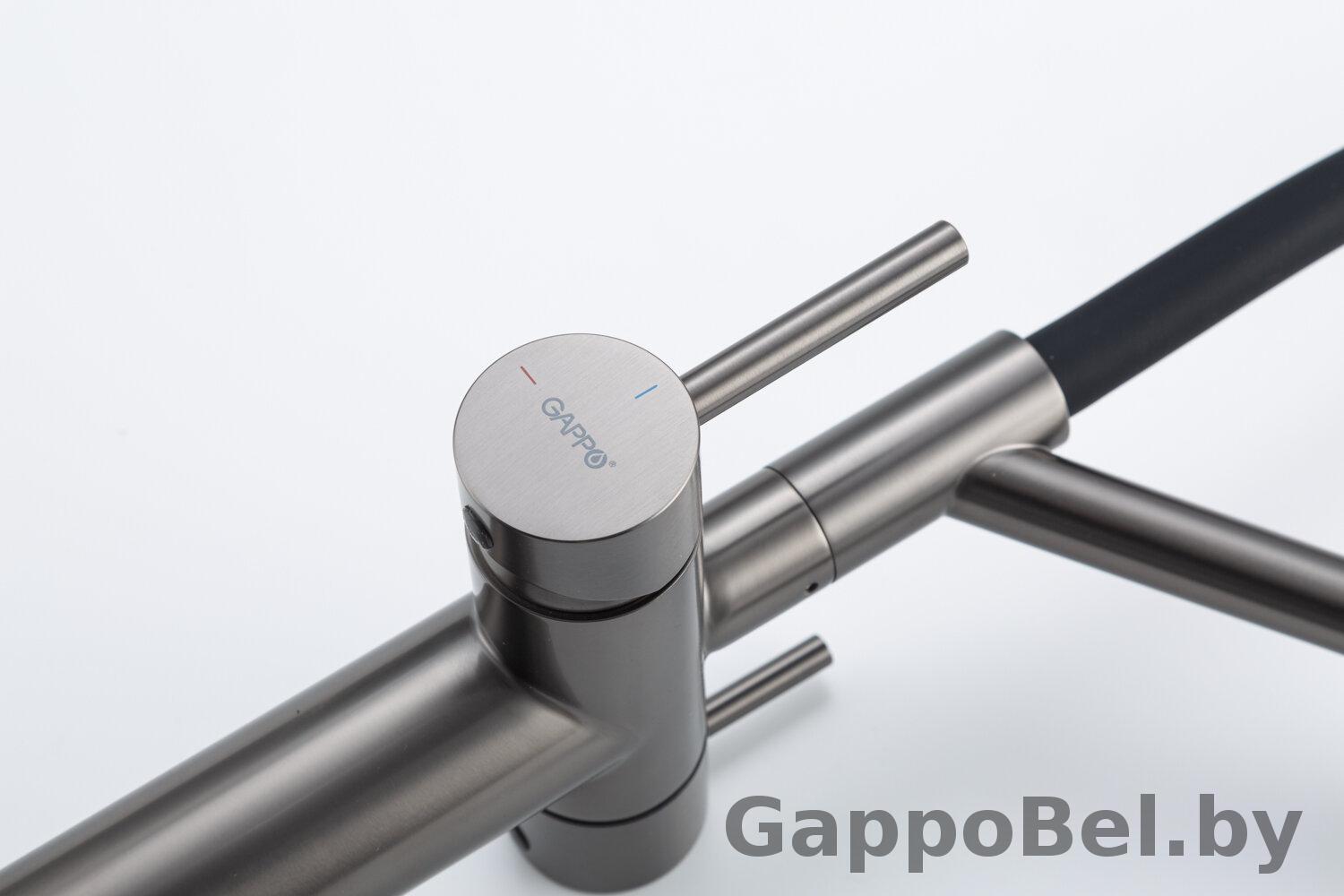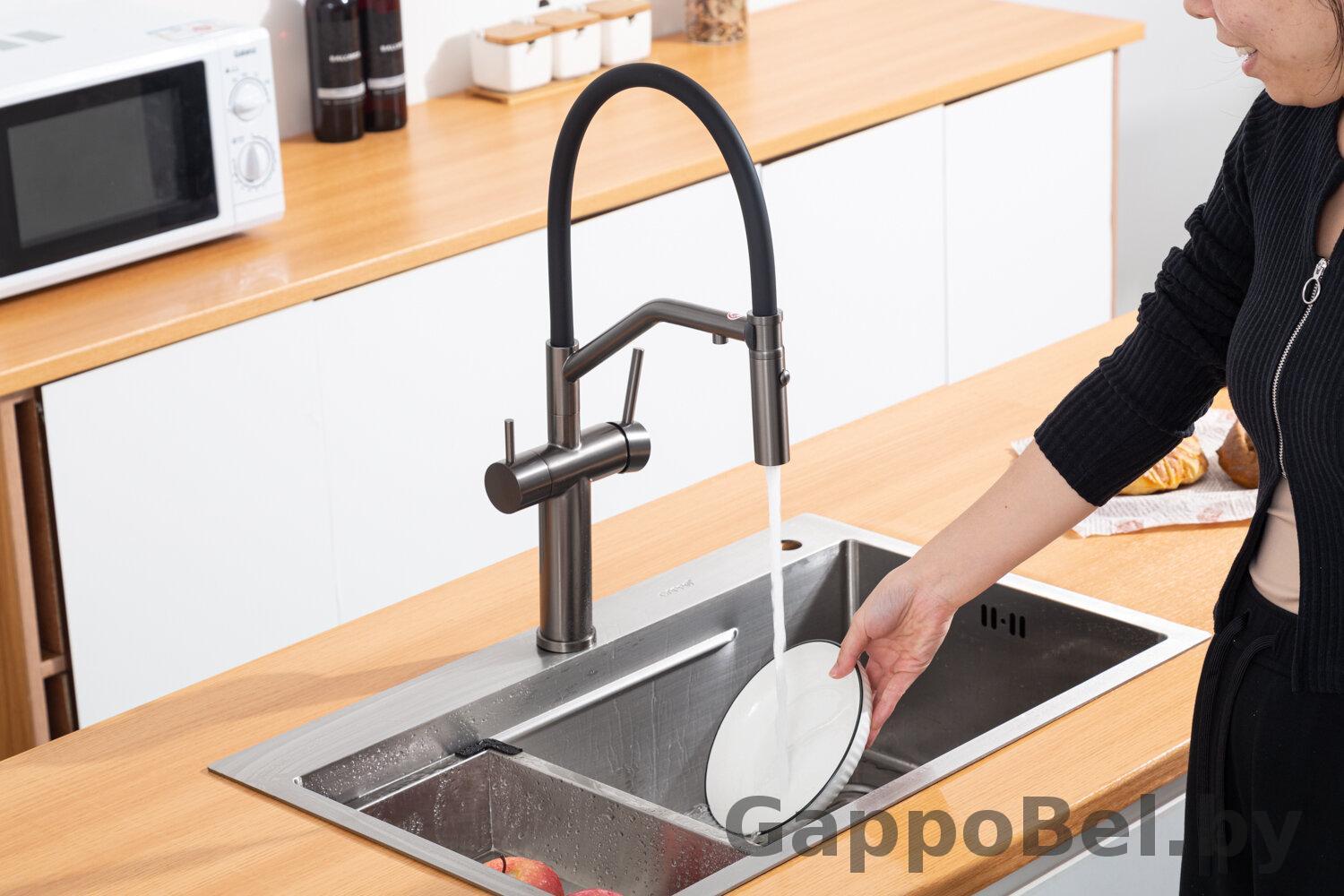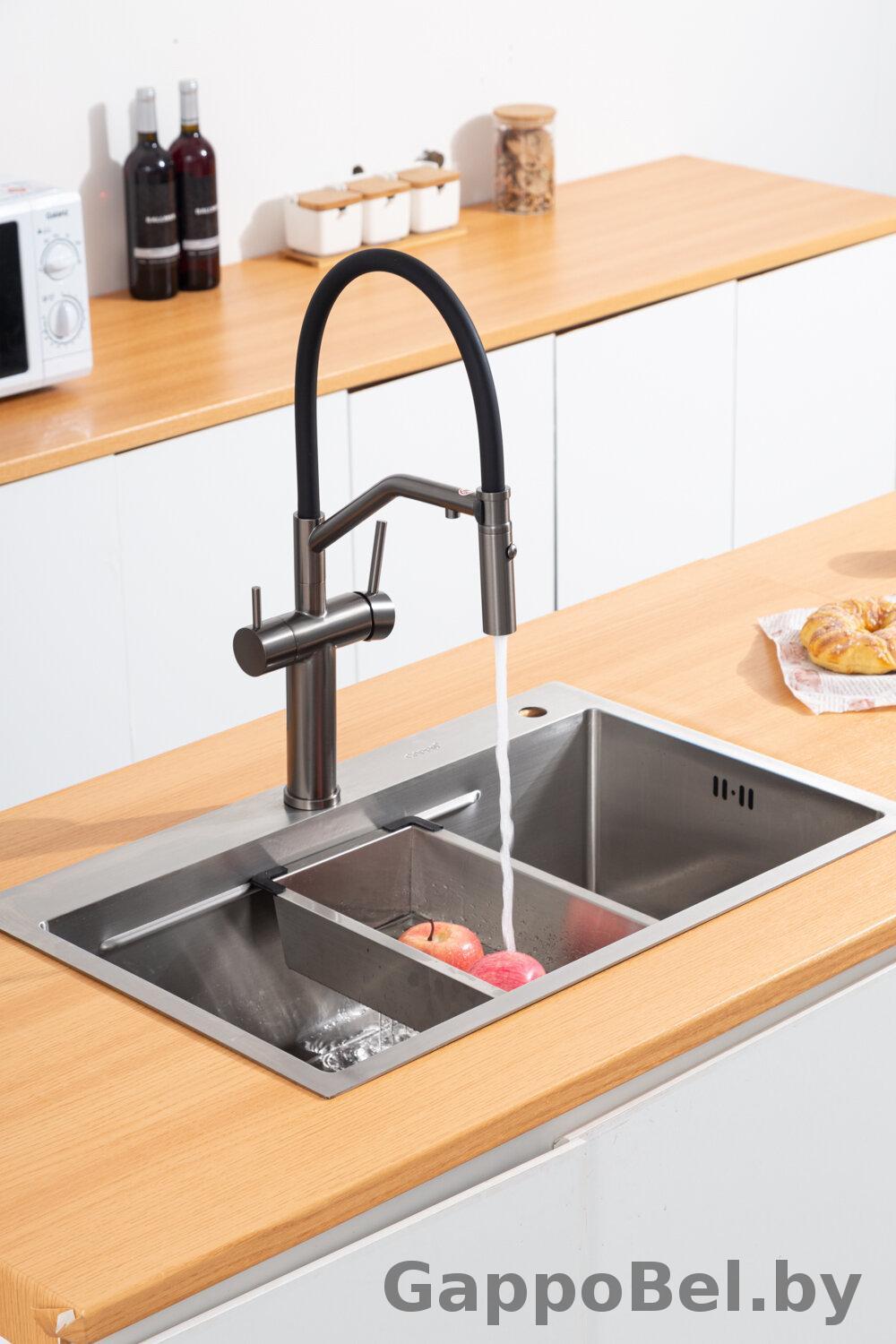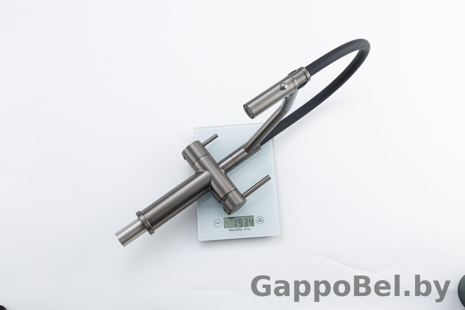 Смеситель для кухонной мойки Gappo G4399-89 с гибким изливом и подключением фильтра питьевой воды, оружейная сталь.