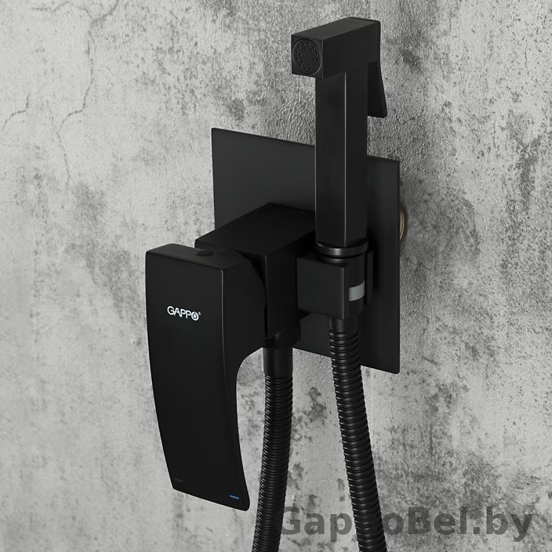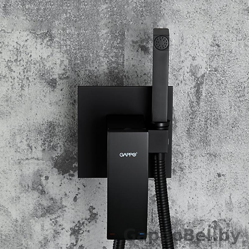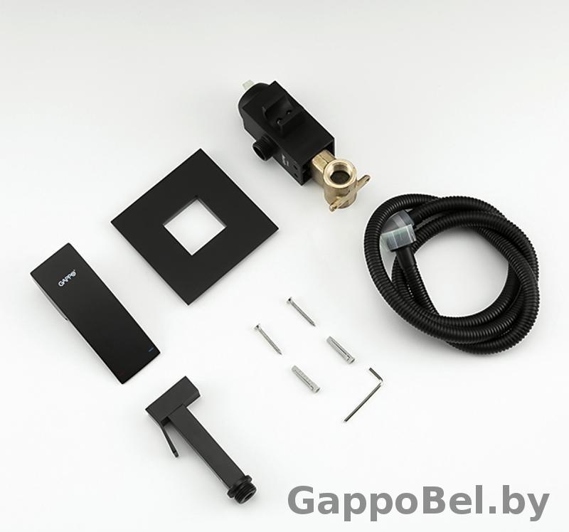 Смеситель с гигиеническим душем Gappo G7207-6 выполнен в черном матовом цвете, скрытый монтаж в стену. Смеситель изготовлен из латуни и комплектуется гигиенической металлической лейкой.