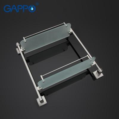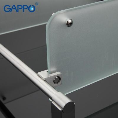 Стеклянная двухуровневая полка в ванную Gappo G1707-2, цвет сатин, из нержавейки.